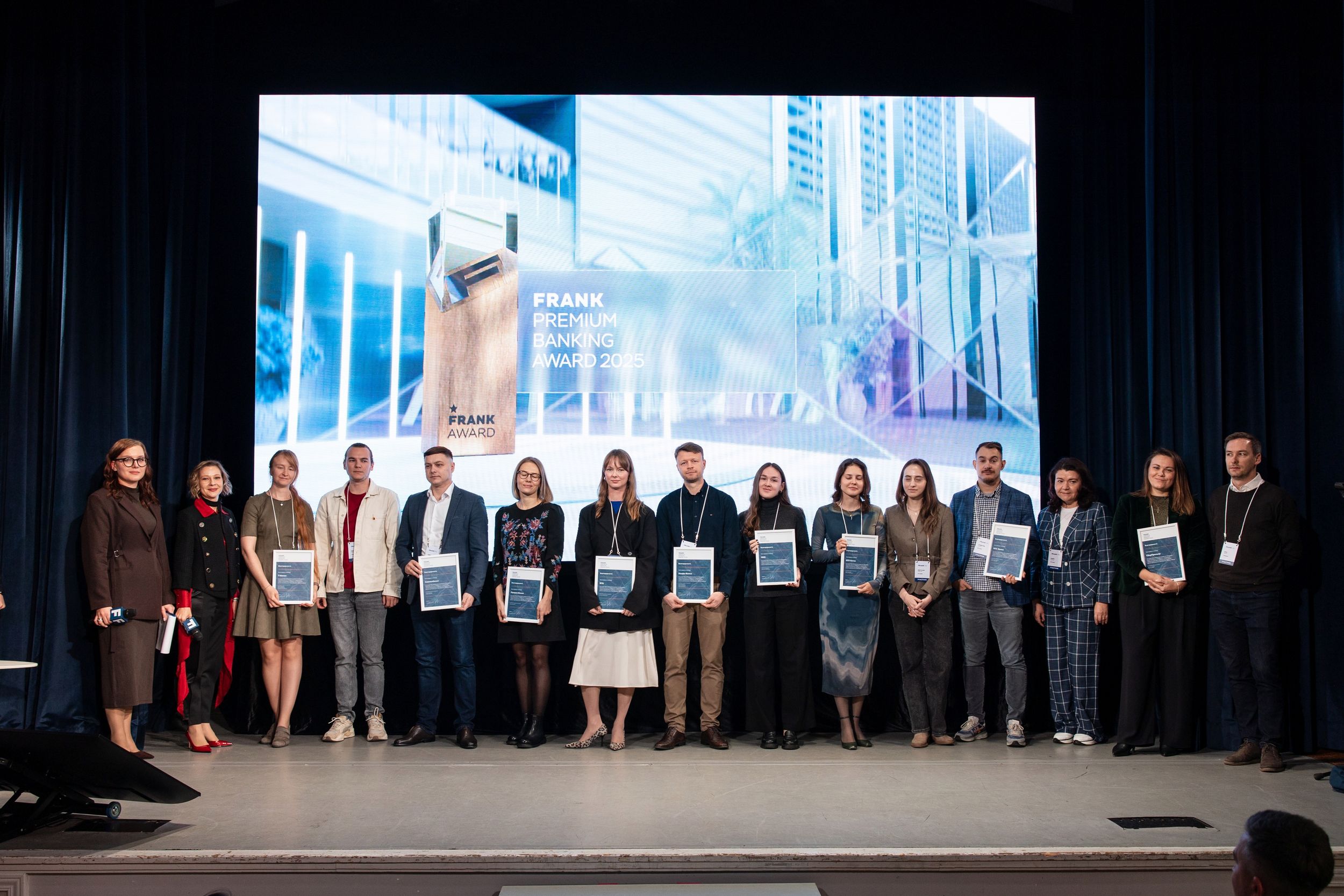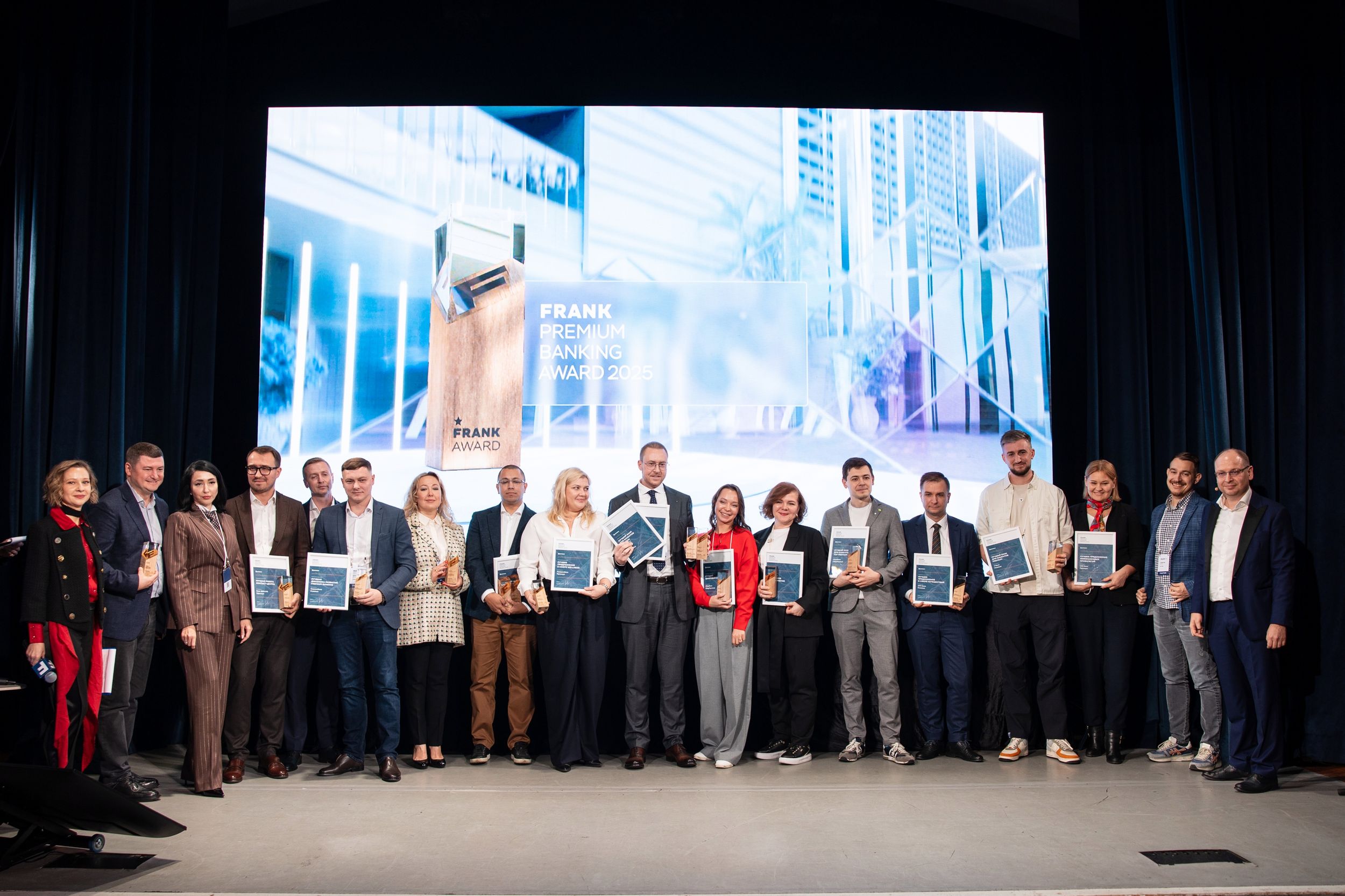 Следом за дискуссией и обсуждением будущего сегмента — долгожданное объявление результатов премии Frank Premium Banking Award 2025. Обладателями статуэток в номинациях стали: