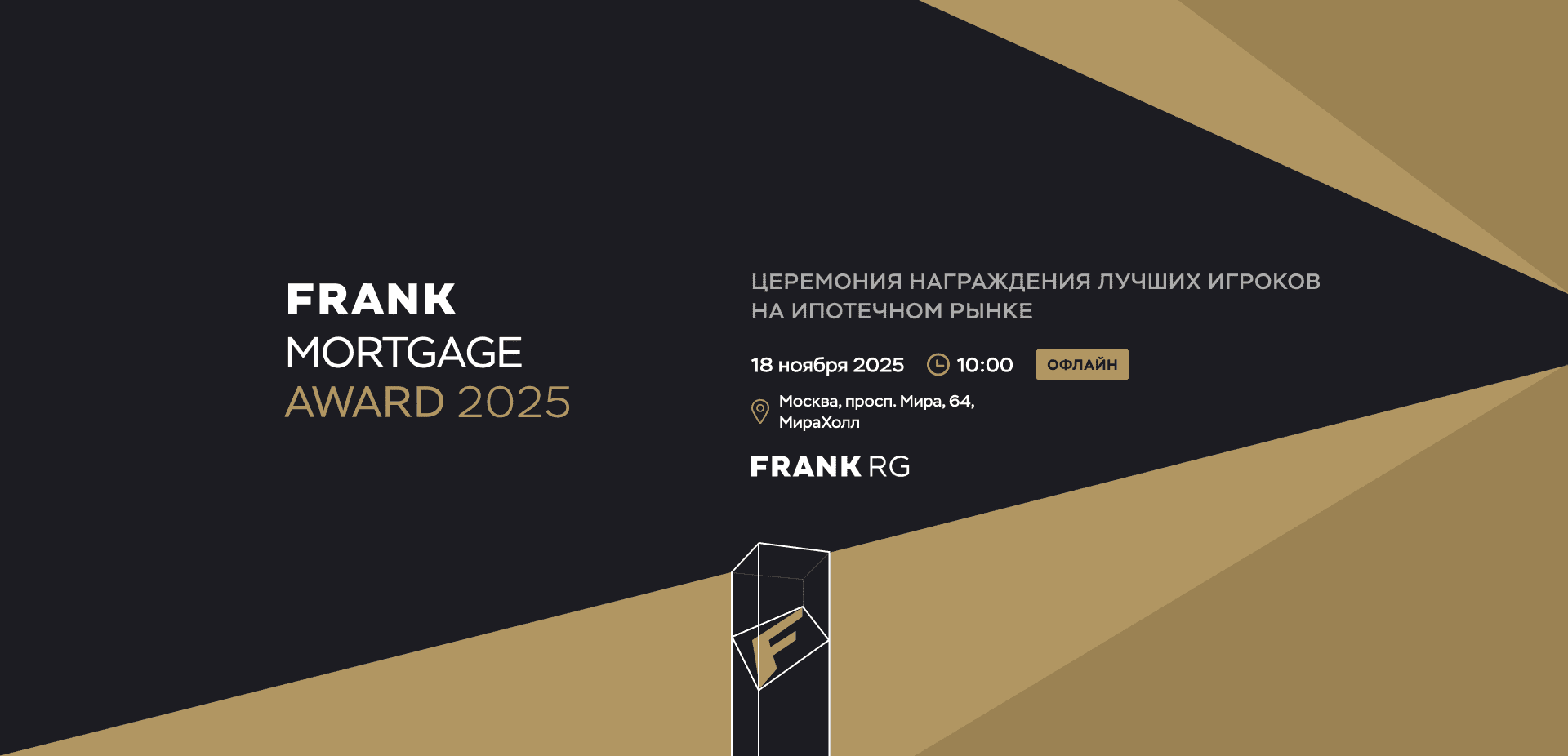 С 2021 года мы вручаем наши награды лучшим банкам на рынке ипотеки, как по результатам их работы на этом рынке, так и за лучшие программы ипотечного кредитования. Премия Frank Mortgage Award — один из важных итогов нашего глобального исследования рынка ипотеки.