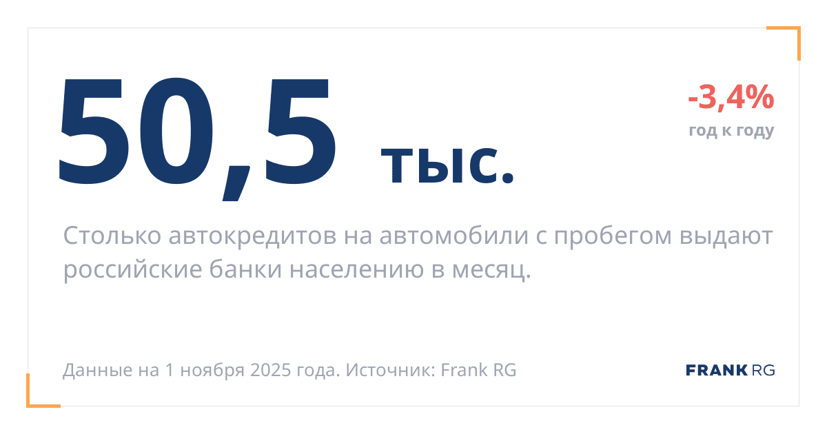 Столько автокредитов на автомобили с пробегом выдают российские банки населению в месяц.