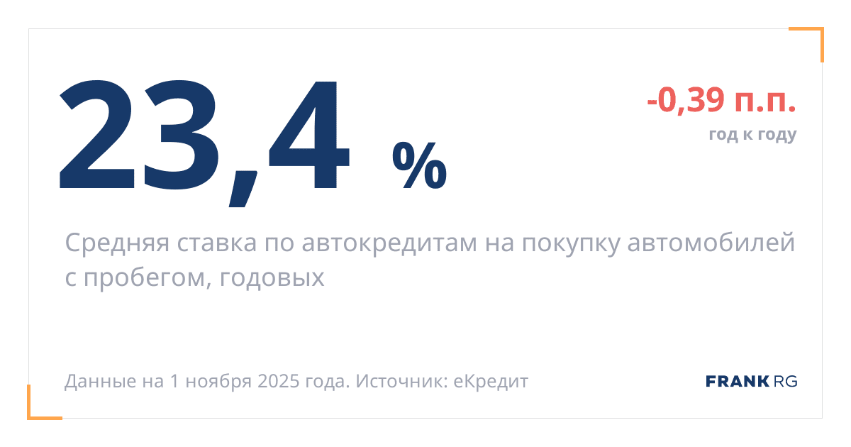 Средняя ставка по автокредитам на покупку автомобилей с пробегом, годовых