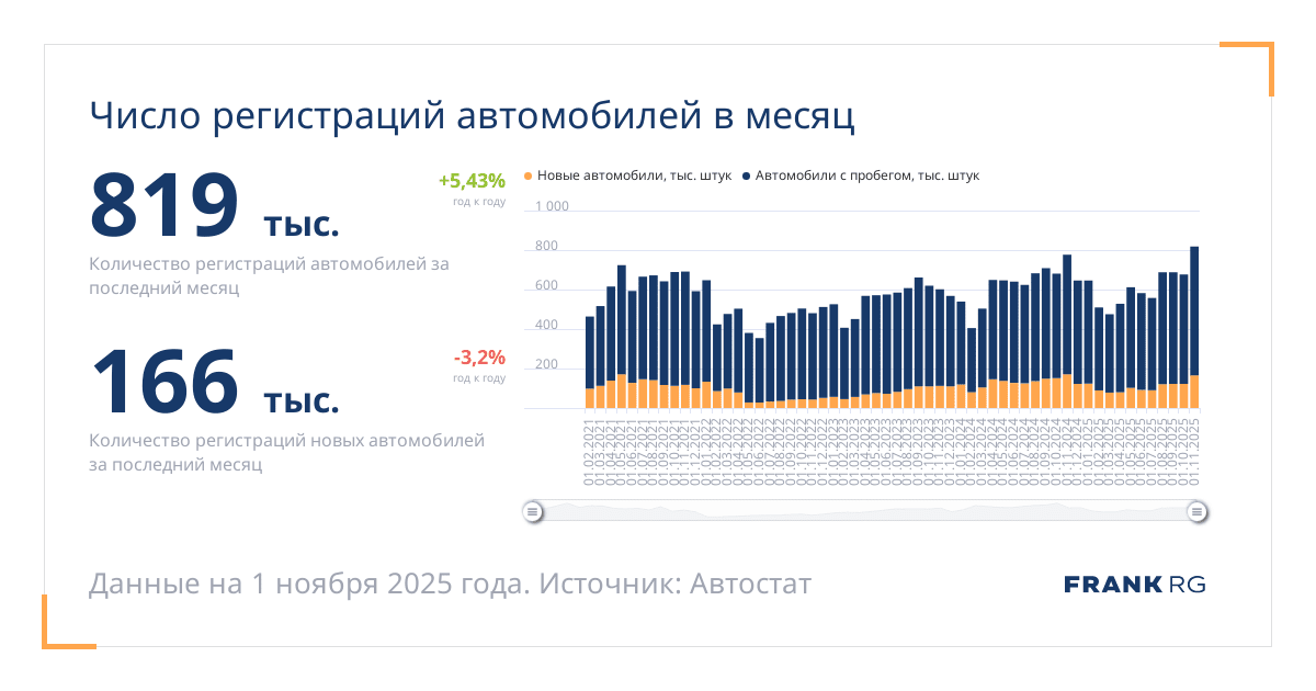 Количество регистраций новых автомобилей за последний месяц