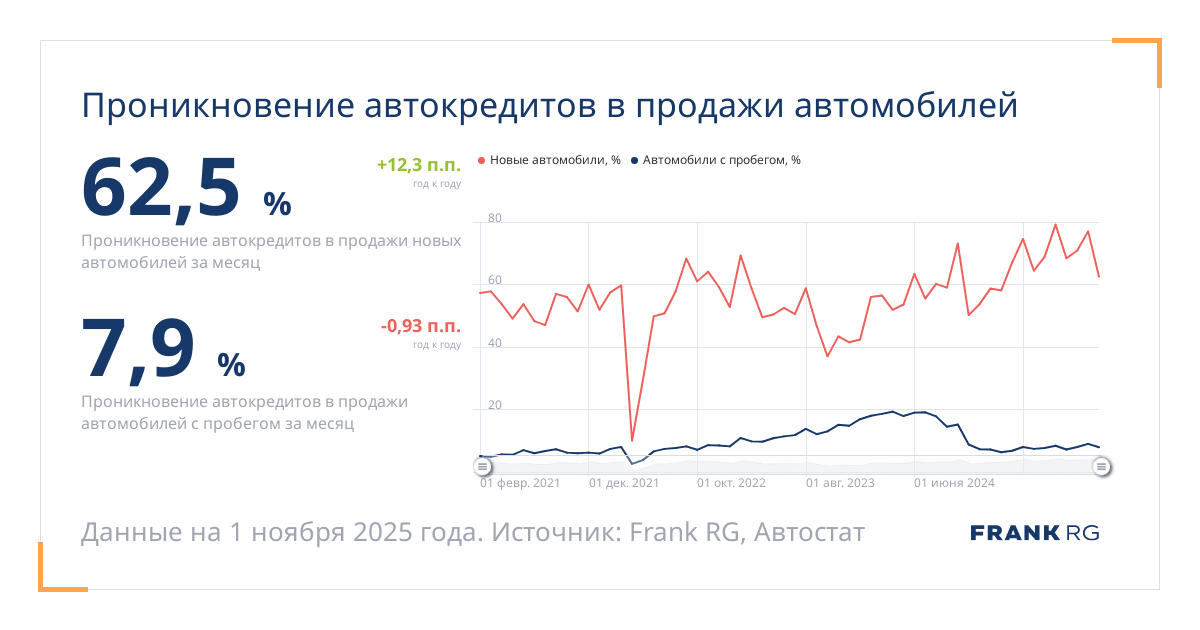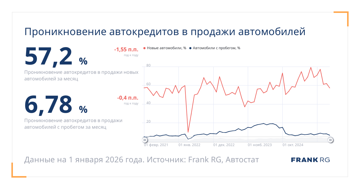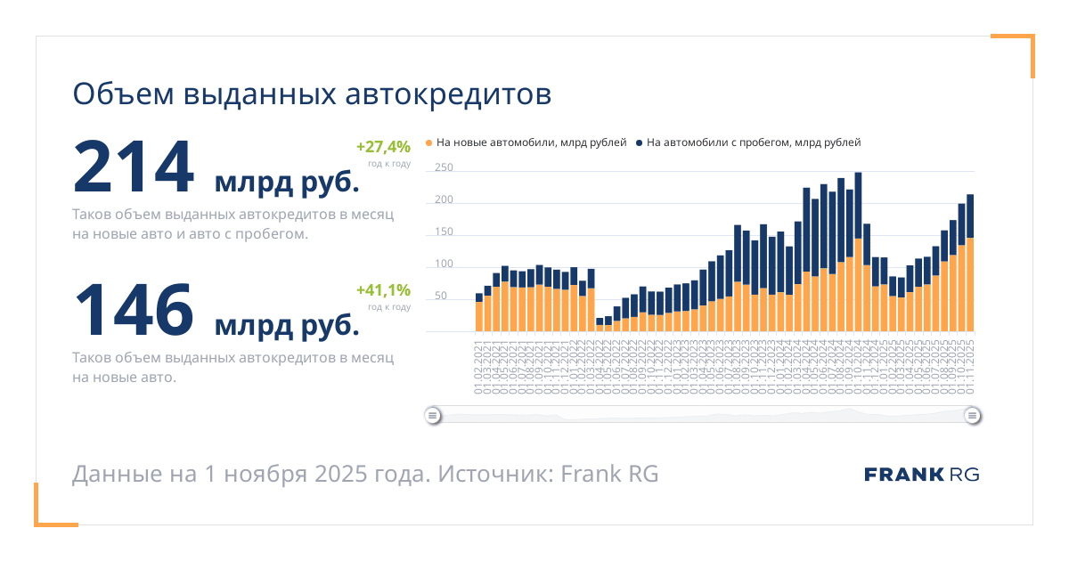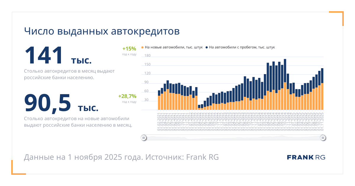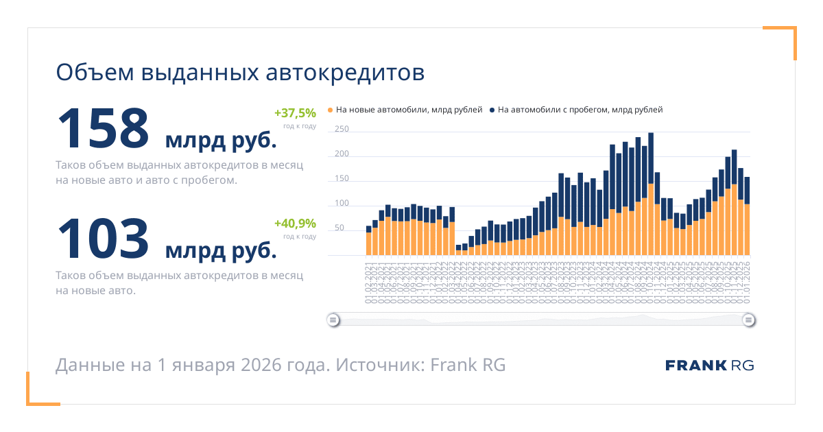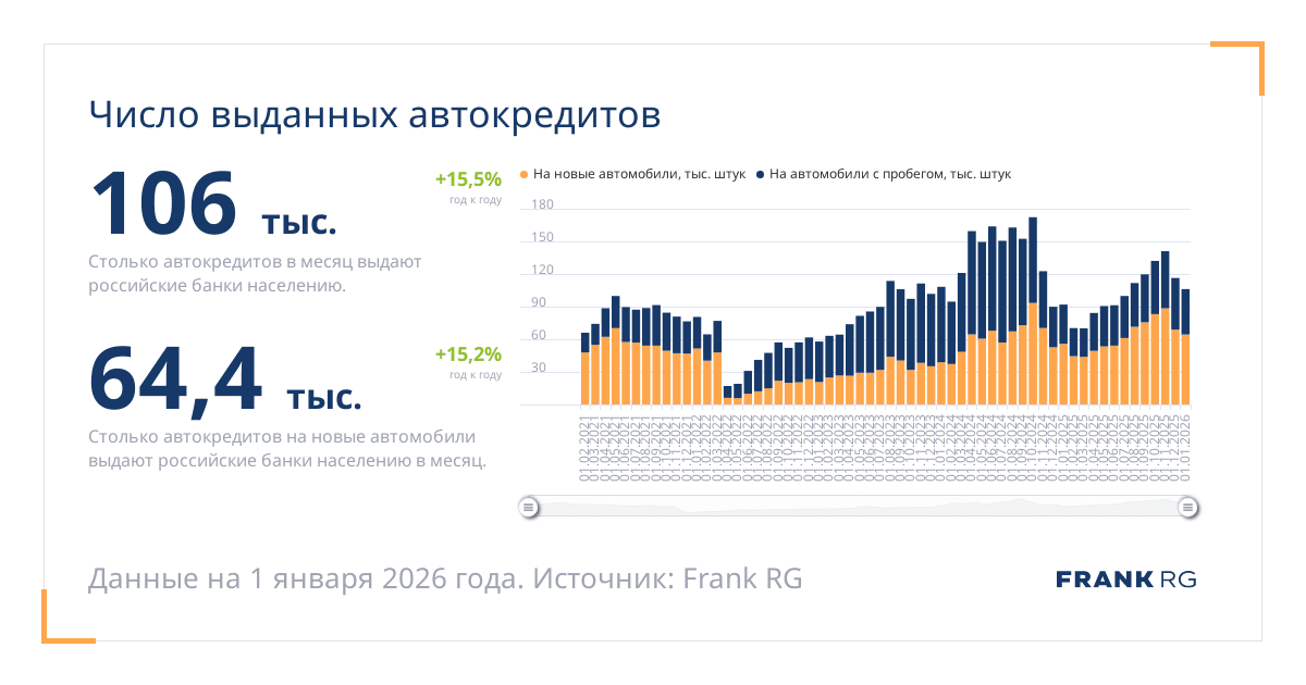Таков объем выданных автокредитов в месяц на новые авто и авто с пробегом.
