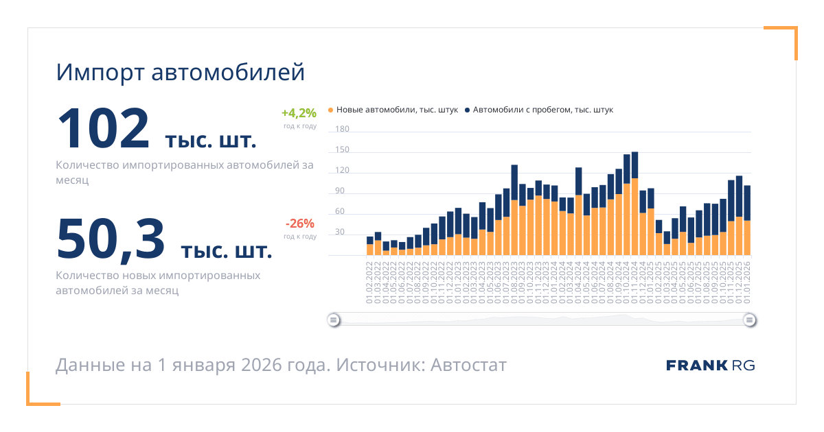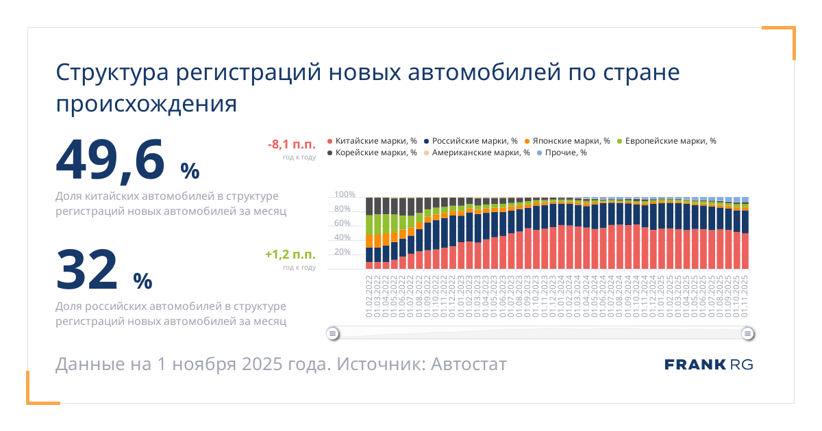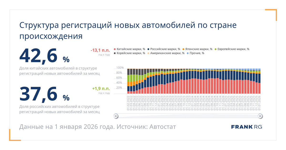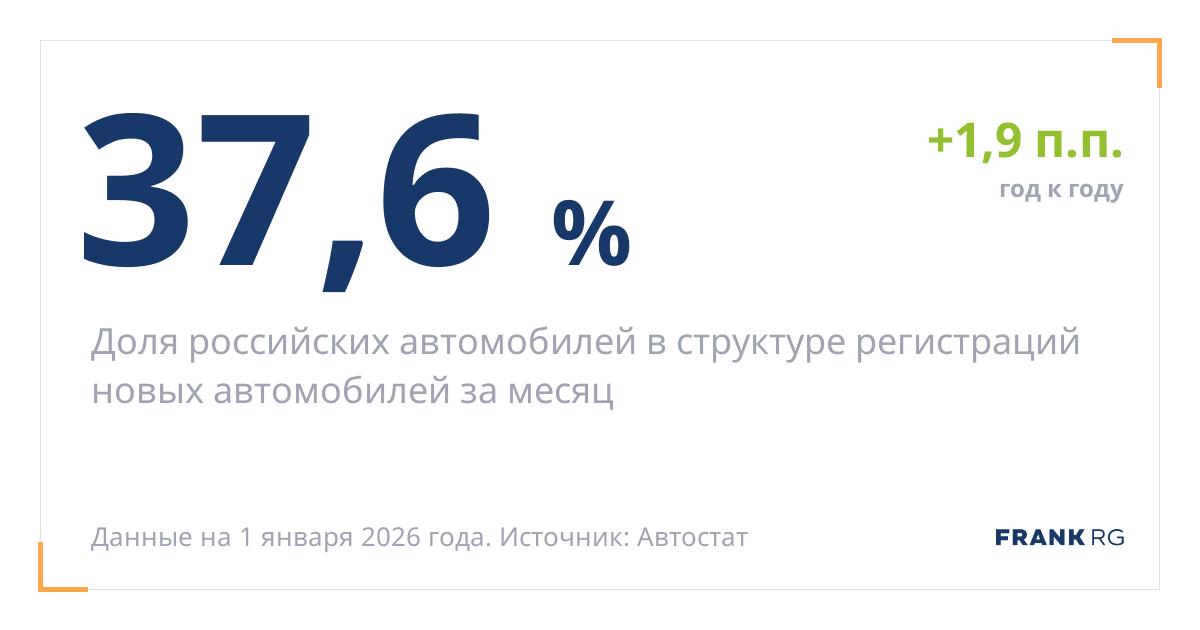 Доля российских автомобилей в структуре регистраций новых автомобилей за месяц