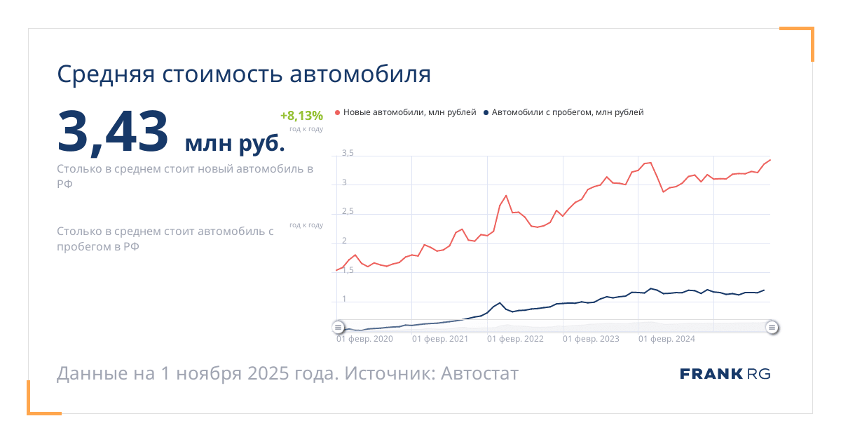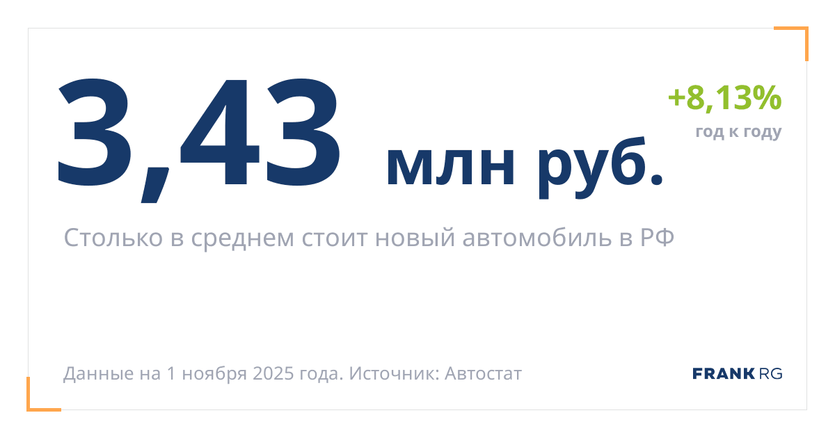 Столько в среднем стоит новый автомобиль в РФ