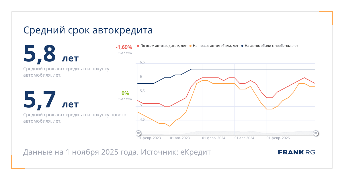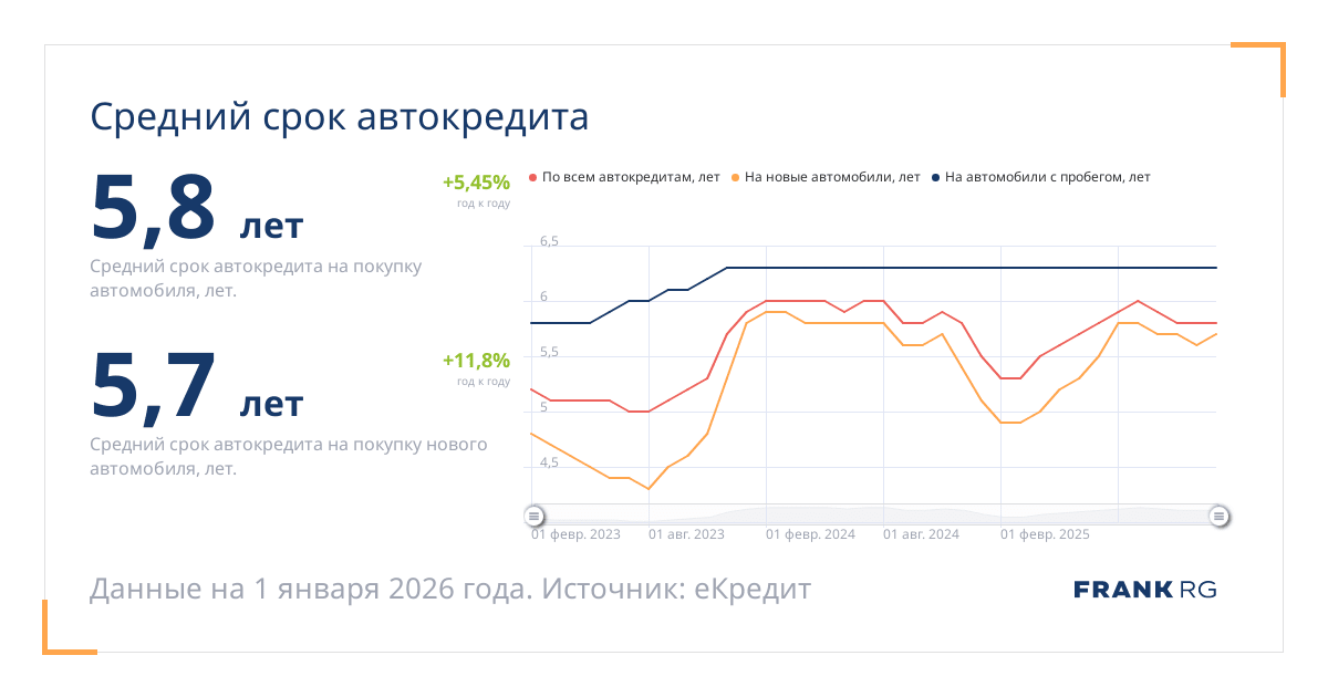 Средний срок автокредита на покупку нового автомобиля, лет.