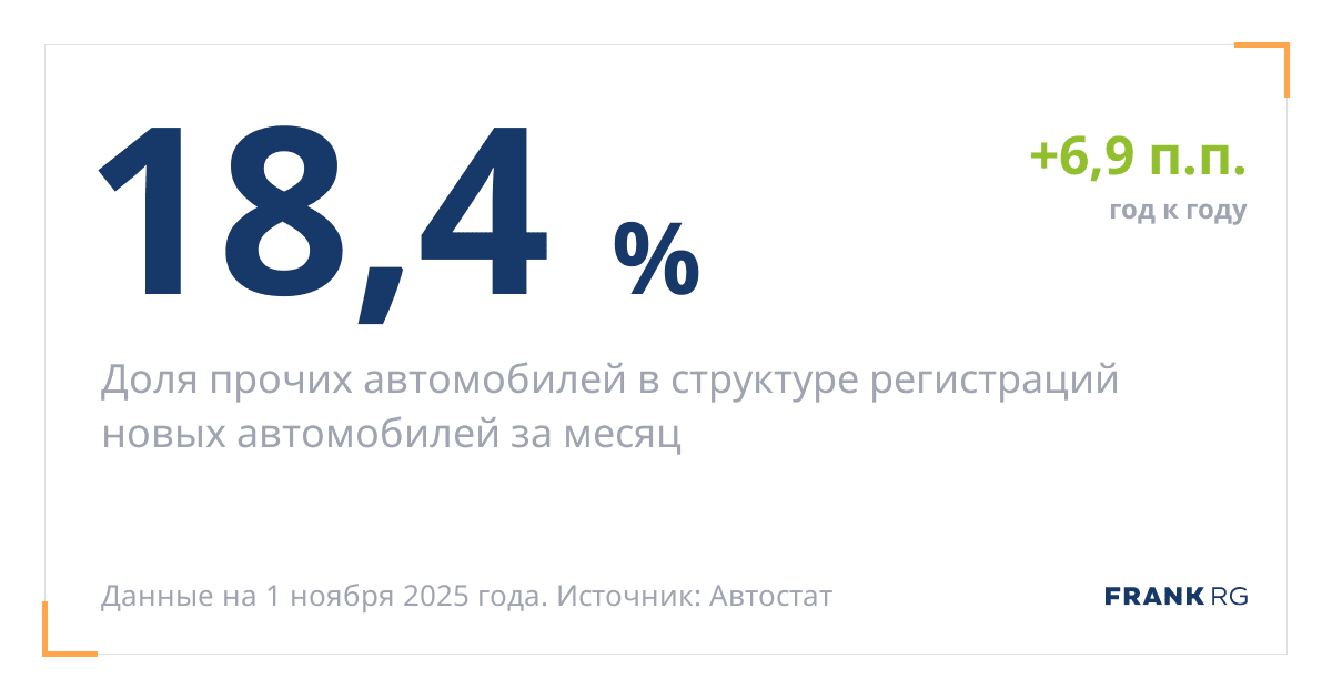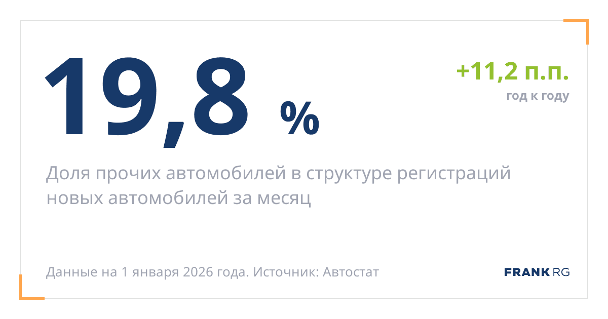 Доля прочих автомобилей в структуре регистраций новых автомобилей за месяц