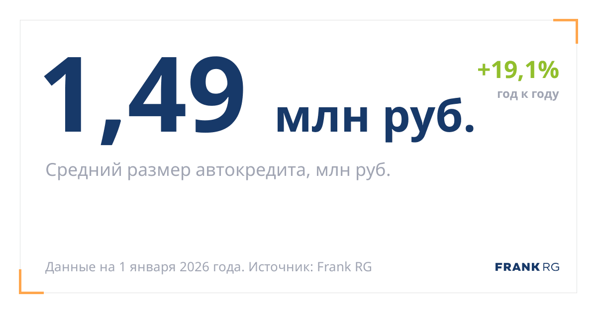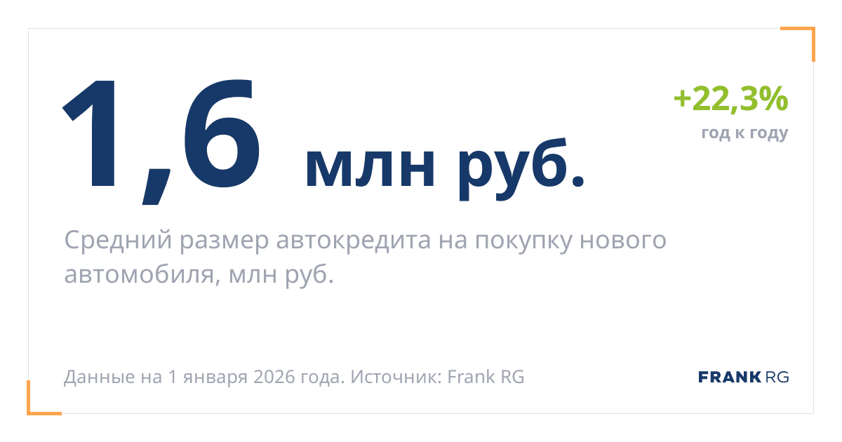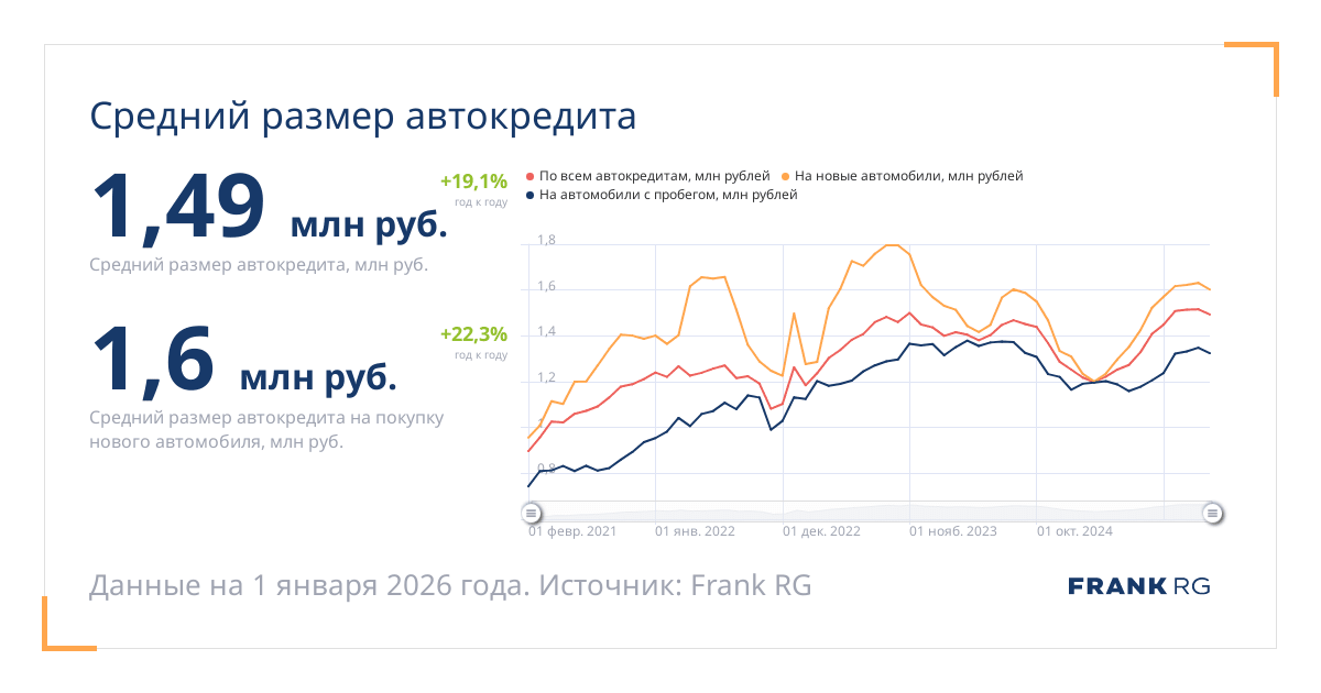Средний размер автокредита на покупку нового автомобиля, млн руб.