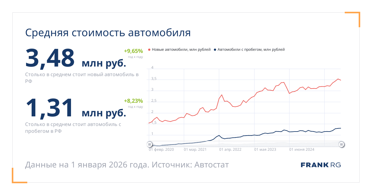 Cтолько в среднем стоит автомобиль с пробегом в РФ