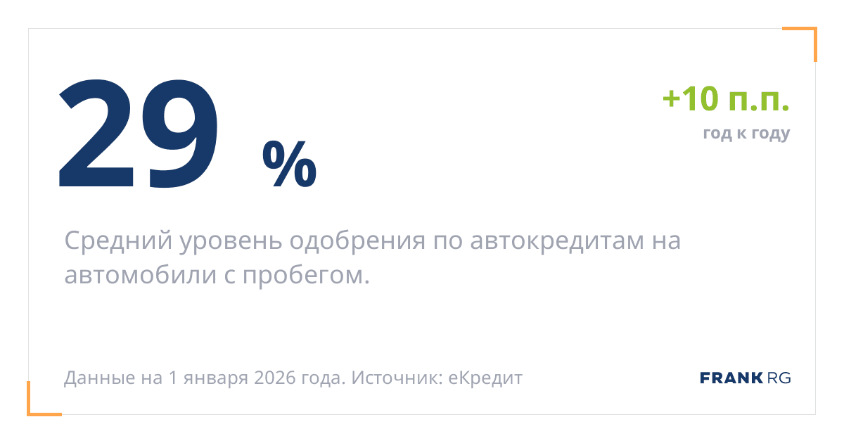 Средний уровень одобрения по автокредитам на автомобили с пробегом.