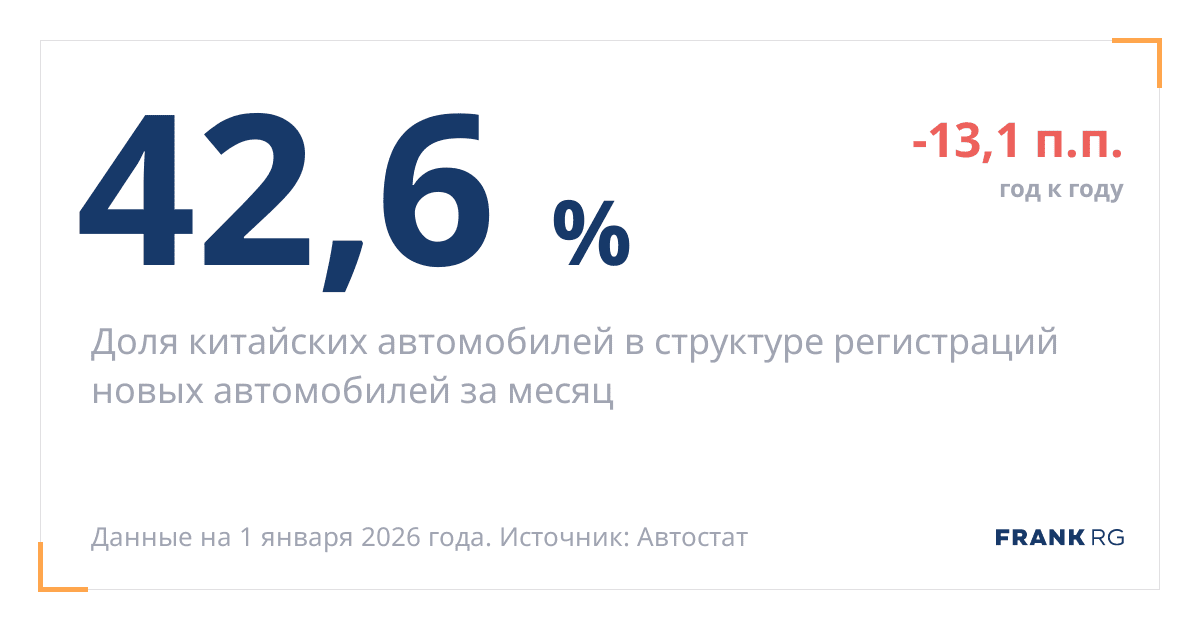 Доля китайских автомобилей в структуре регистраций новых автомобилей за месяц
