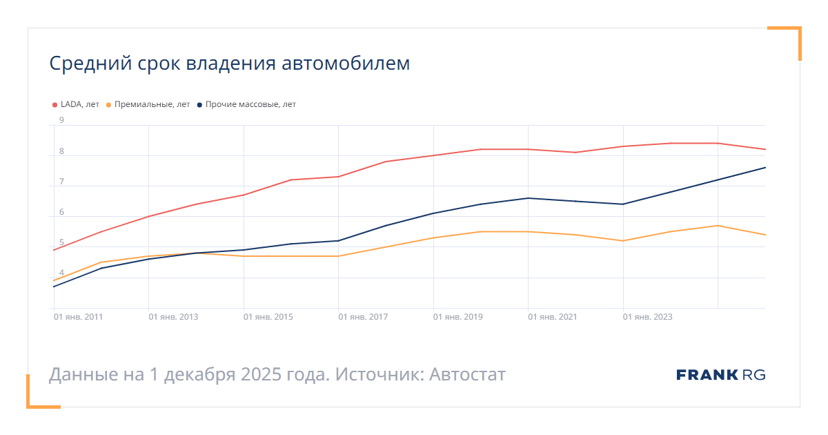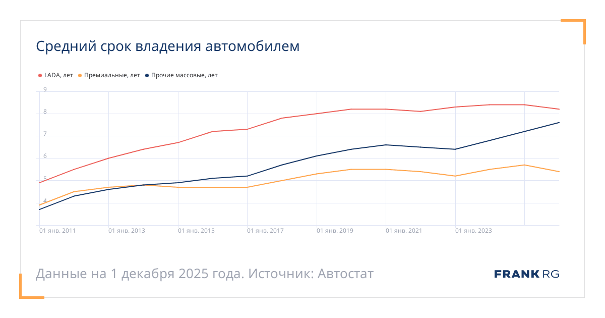 Дата | LADA, лет | Премиальные, лет | Прочие массовые, лет |