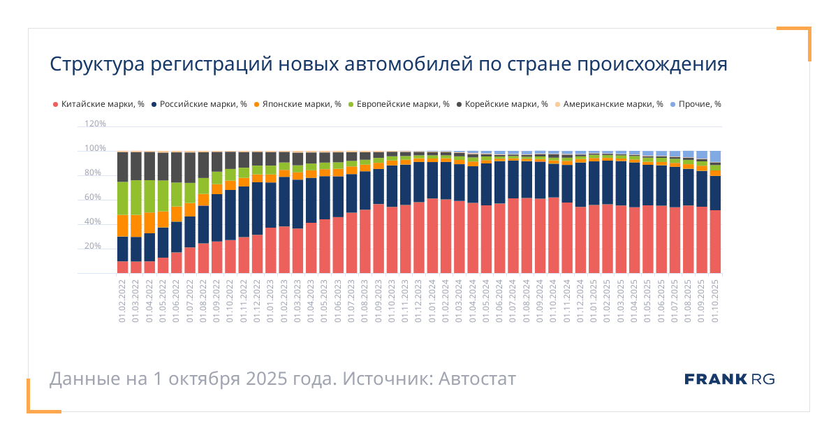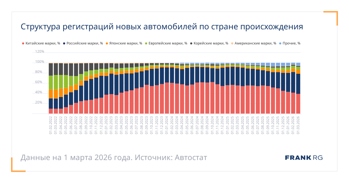 Дата | Китайские марки, % | Российские марки, % | Японские марки, % | Европейские марки, % | Корейские марки, % | Американские марки, % | Прочие, % |