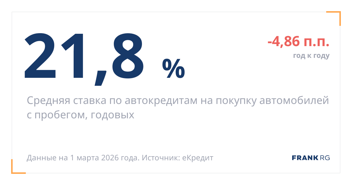 Средняя ставка по автокредитам на покупку автомобилей с пробегом, годовых
