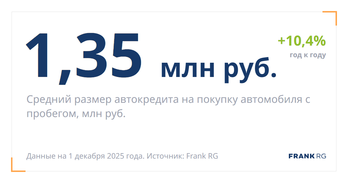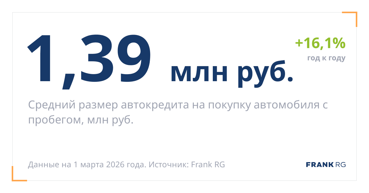 Средний размер автокредита на покупку автомобиля с пробегом, млн руб.