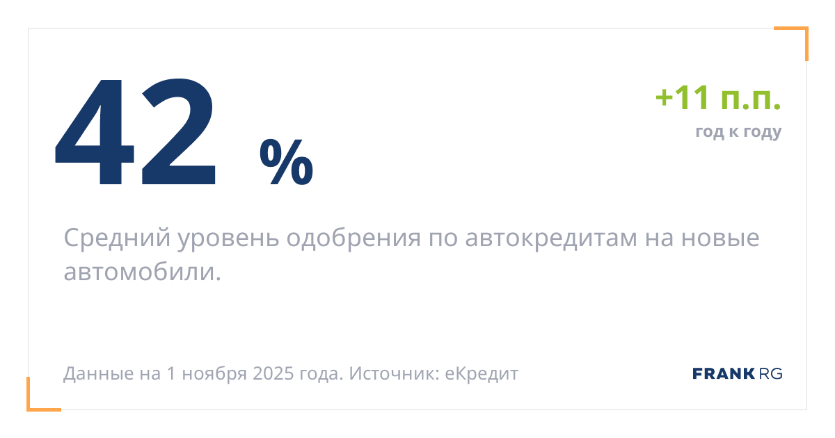 Средний уровень одобрения по автокредитам на новые автомобили.