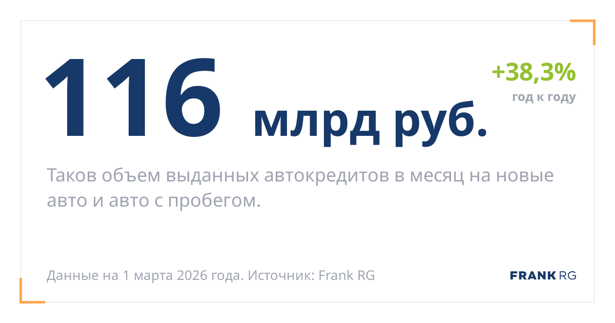 Таков объем выданных автокредитов в месяц на новые авто и авто с пробегом.