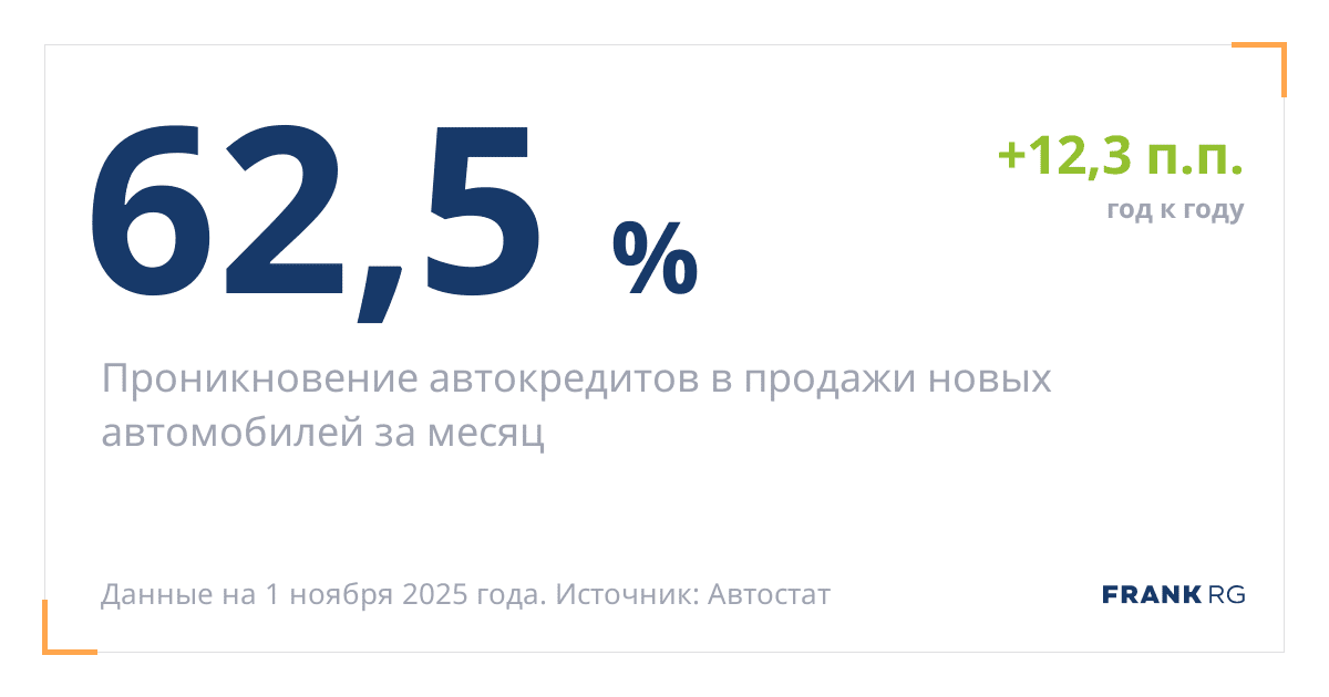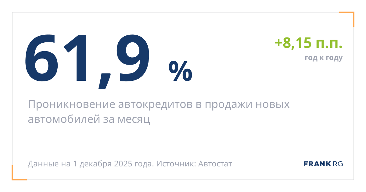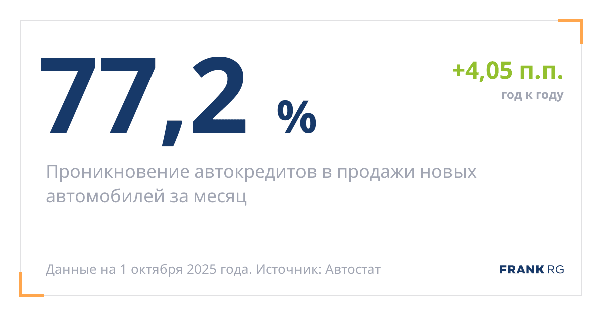 Проникновение автокредитов в продажи новых автомобилей за месяц