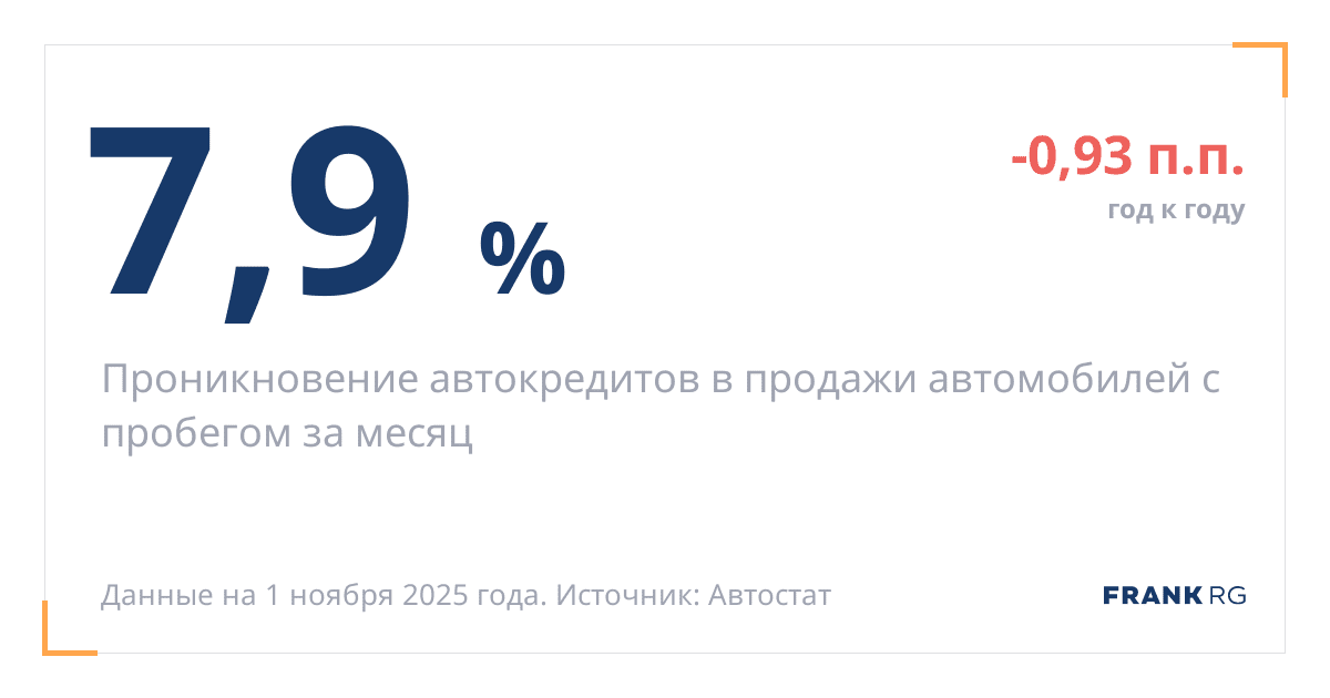 Проникновение автокредитов в продажи автомобилей с пробегом за месяц