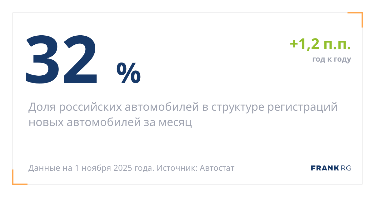 Доля российских автомобилей в структуре регистраций новых автомобилей за месяц