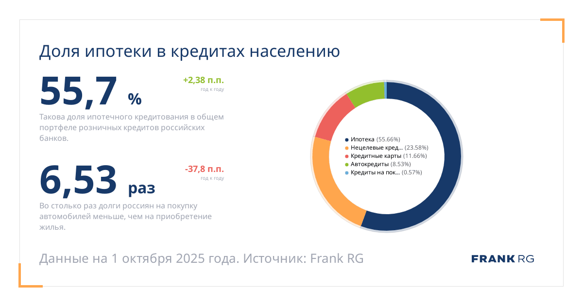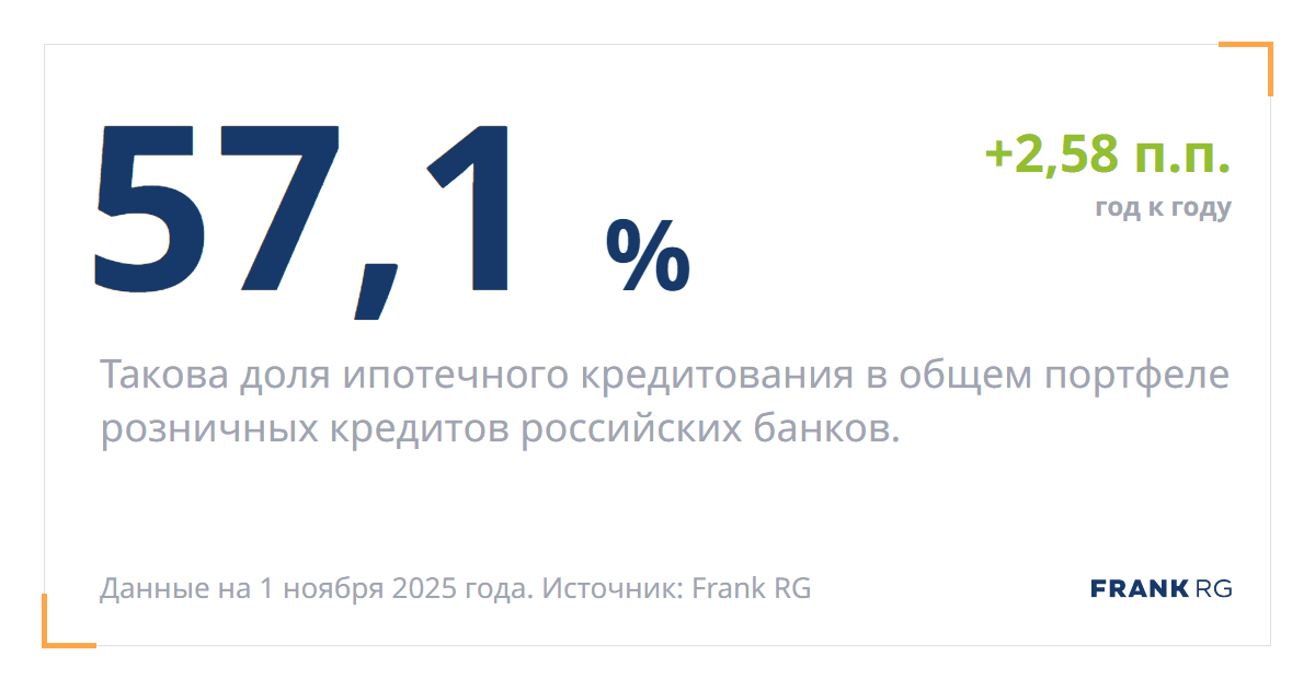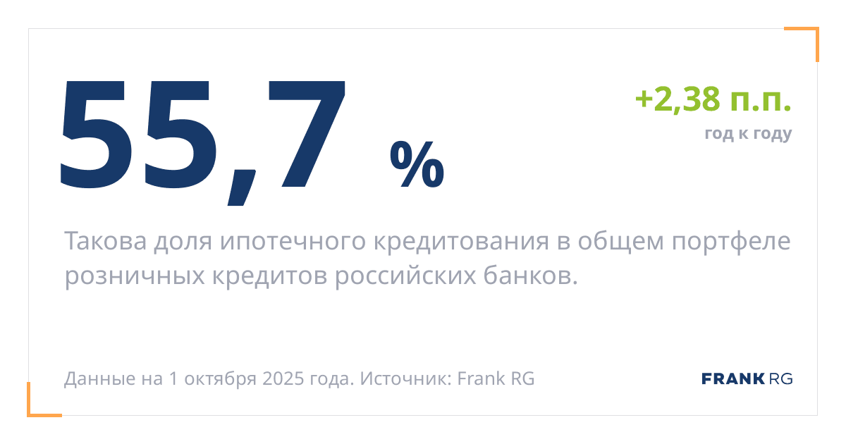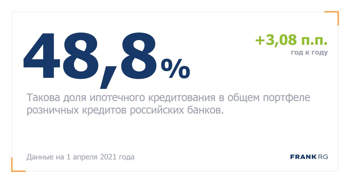 Такова доля ипотечного кредитования в общем портфеле розничных кредитов российских банков.