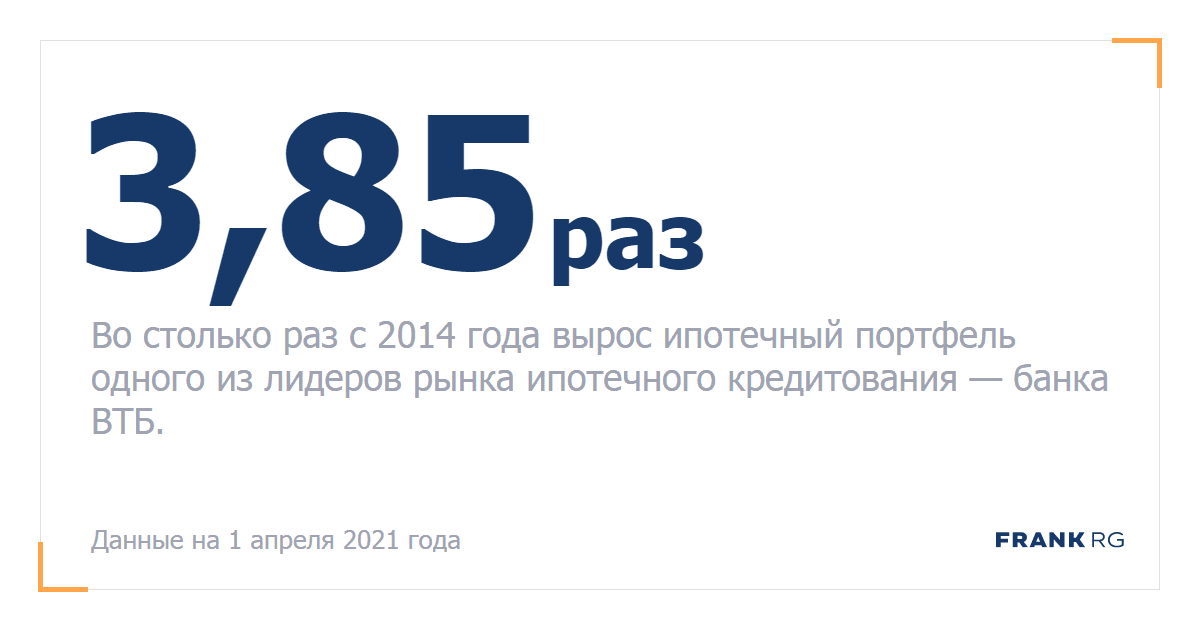 Во столько раз с 2014 года вырос ипотечный портфель одного из лидеров рынка ипотечного кредитования — банка ВТБ.