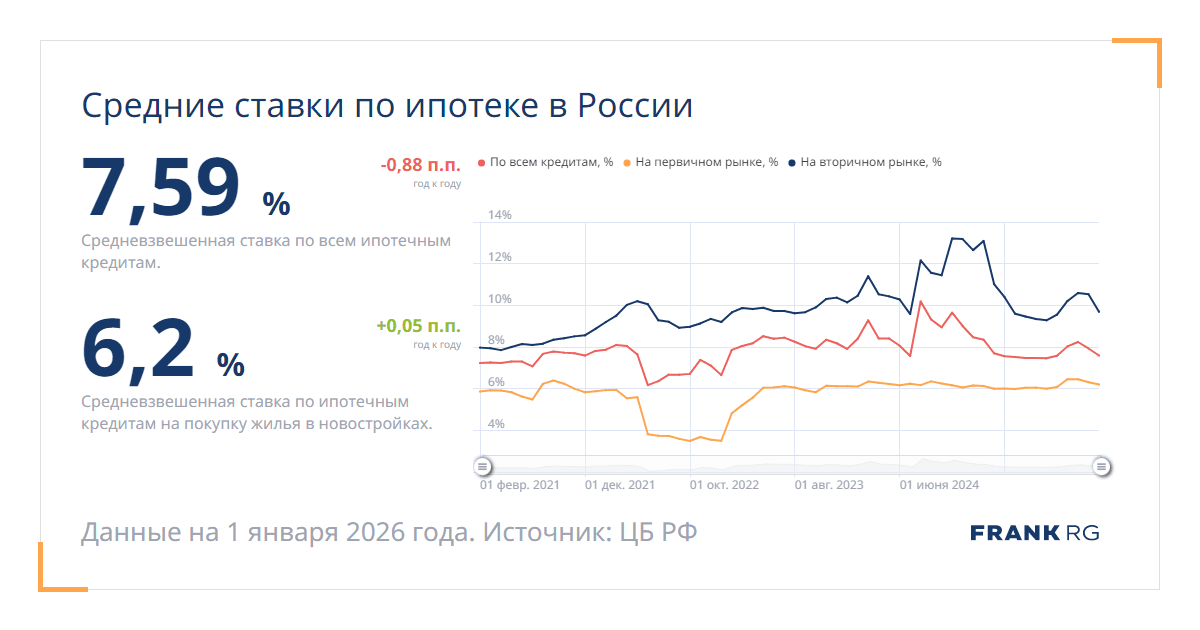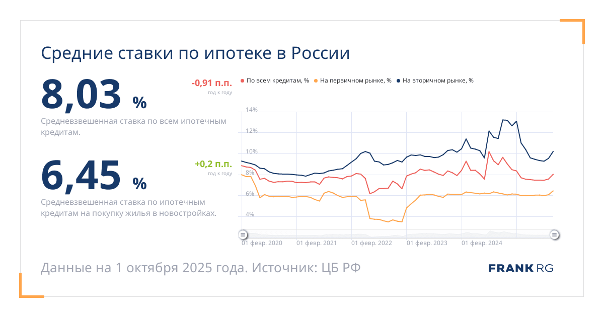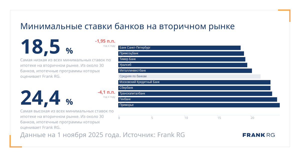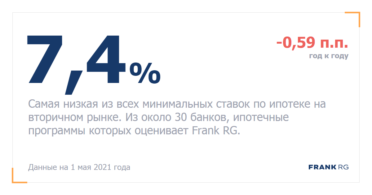 Самая низкая из всех минимальных ставок по ипотеке на вторичном рынке. Из около 30 банков, ипотечные программы которых оценивает Frank RG.