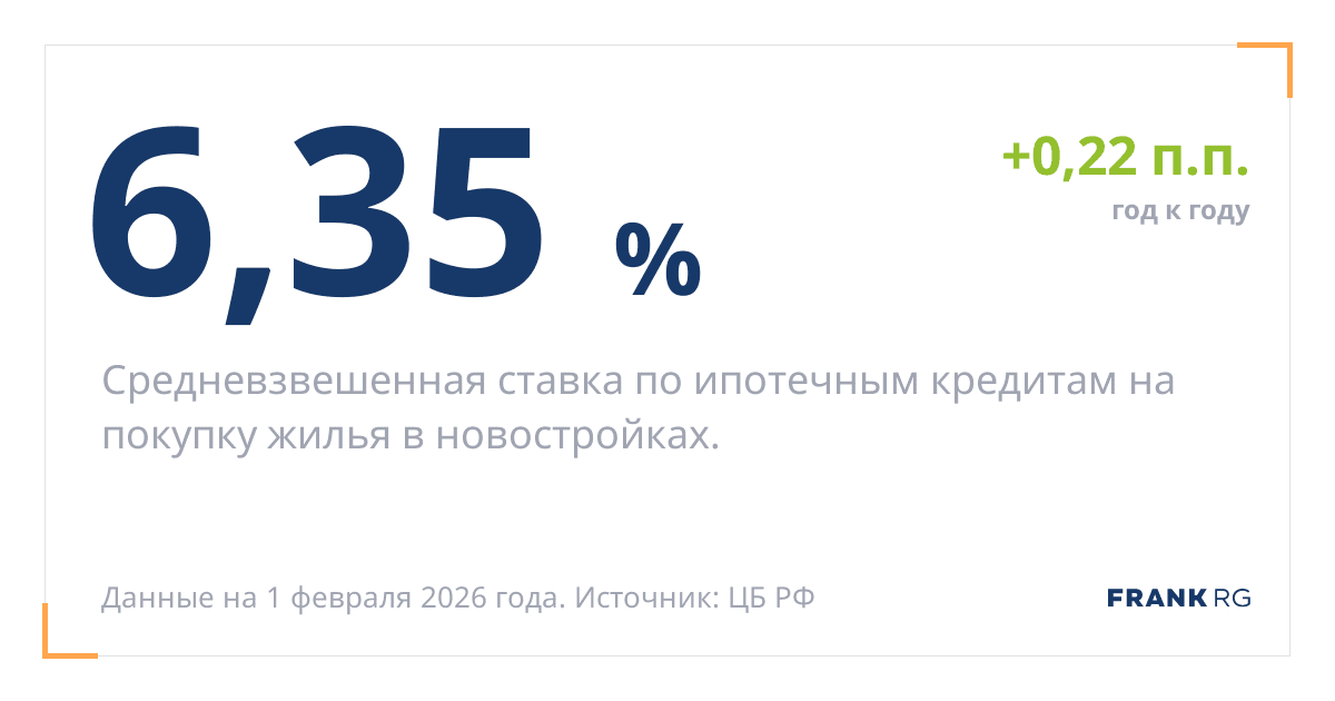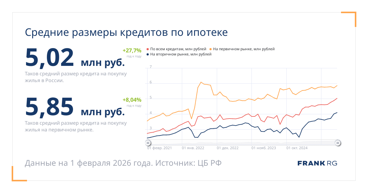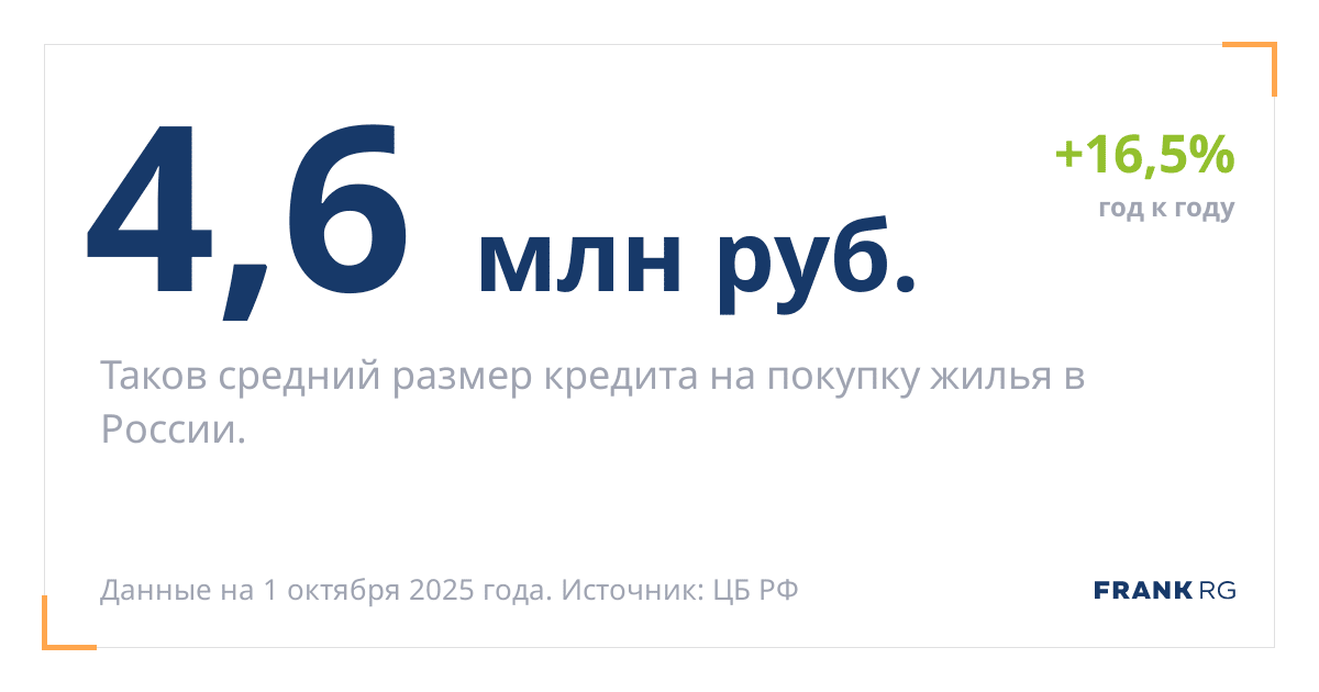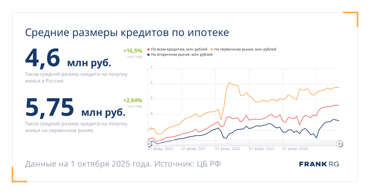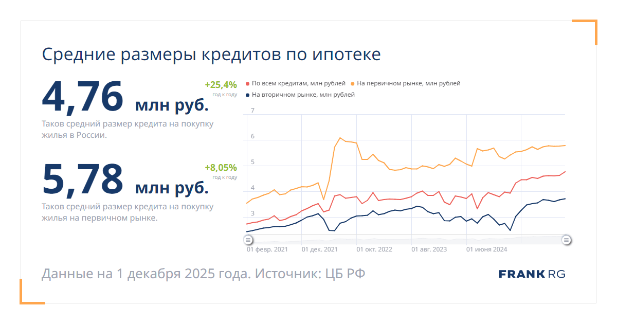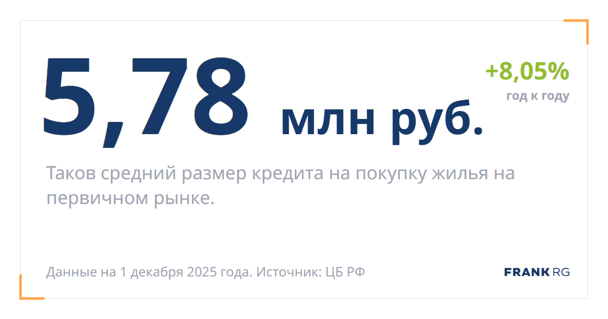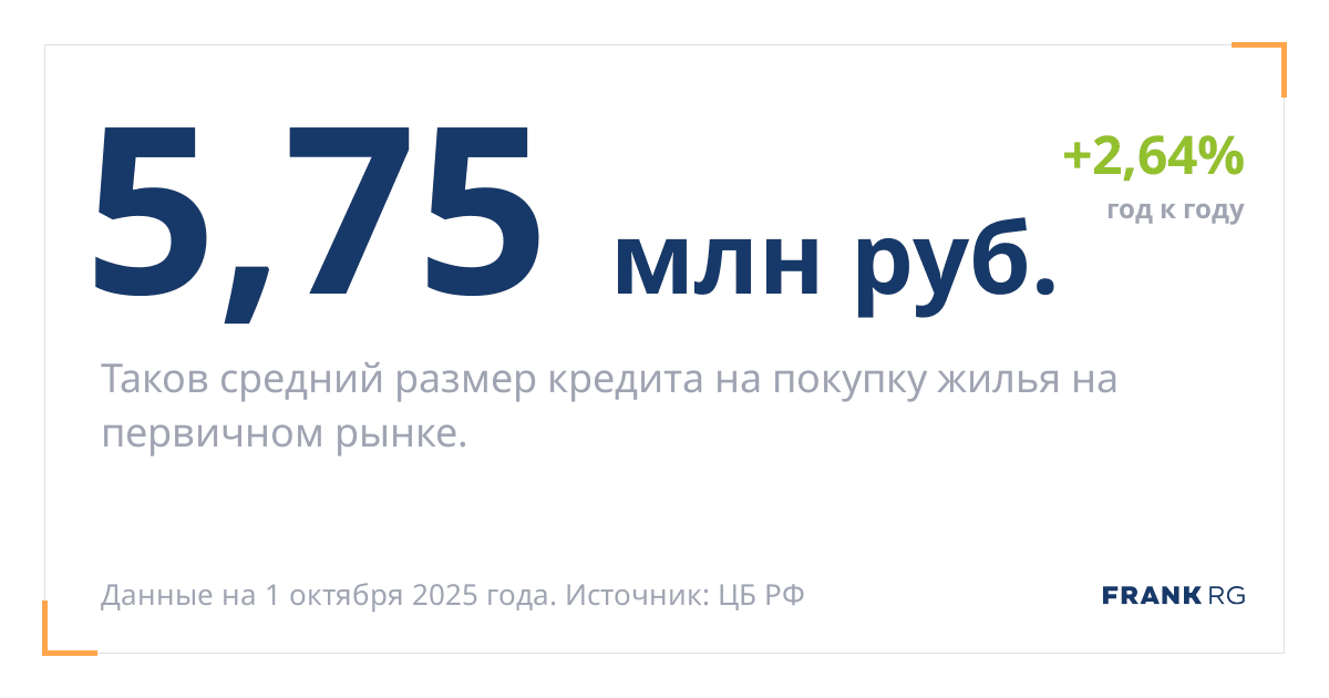 Таков средний размер кредита на покупку жилья на первичном рынке.