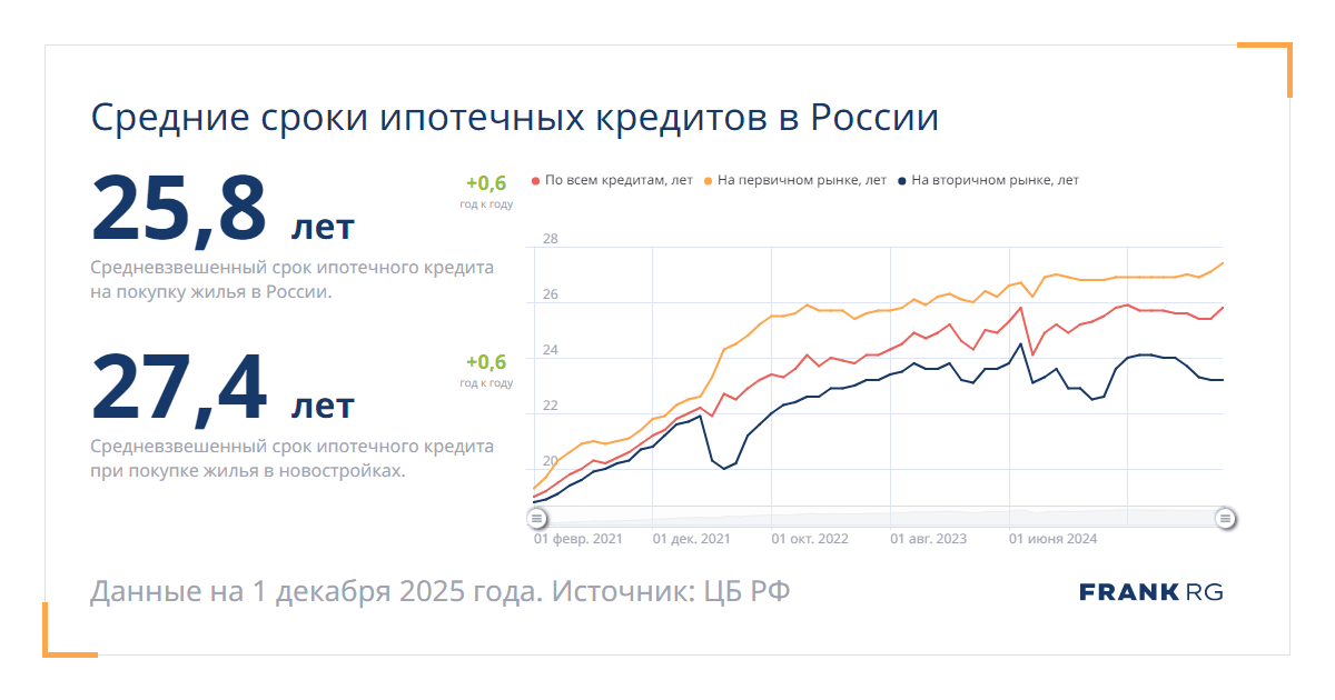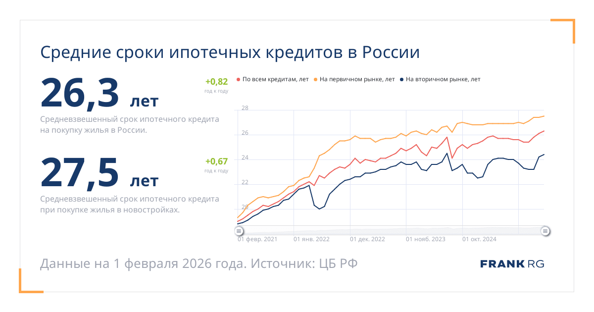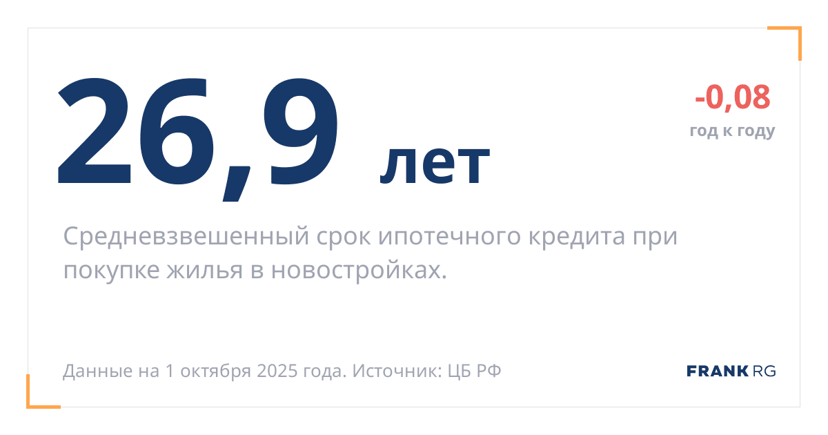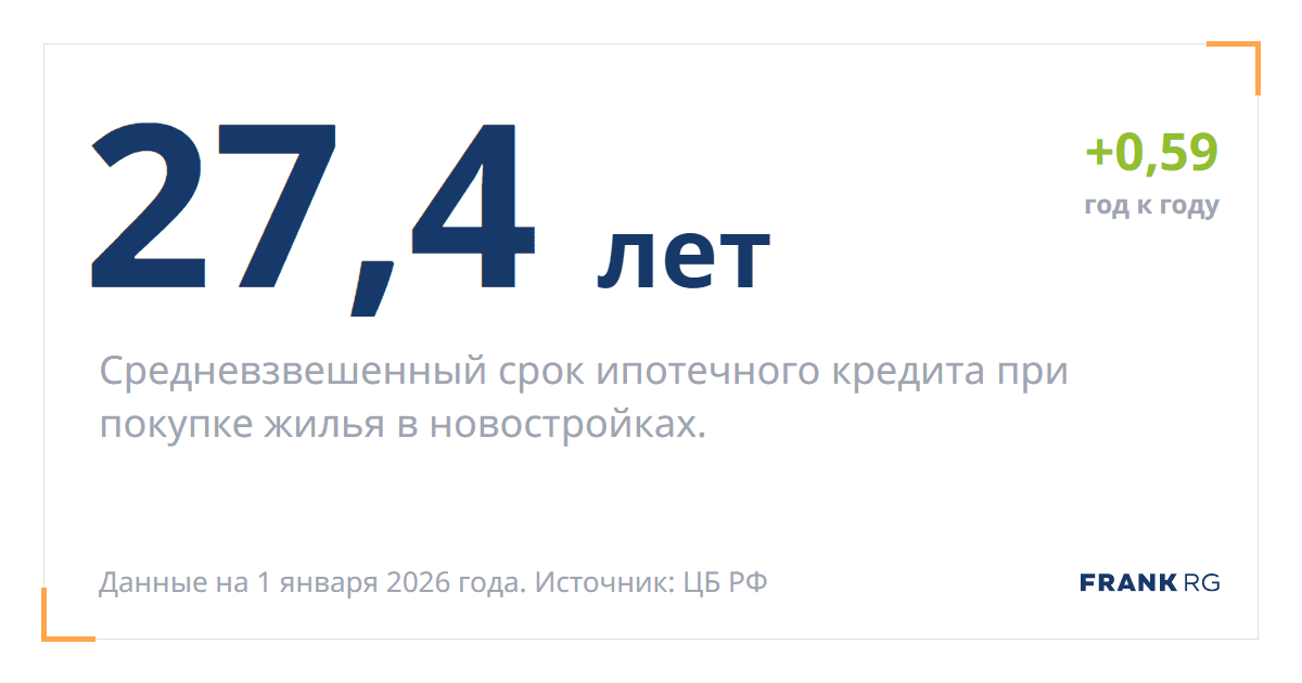 Средневзвешенный срок ипотечного кредита при покупке жилья в новостройках.