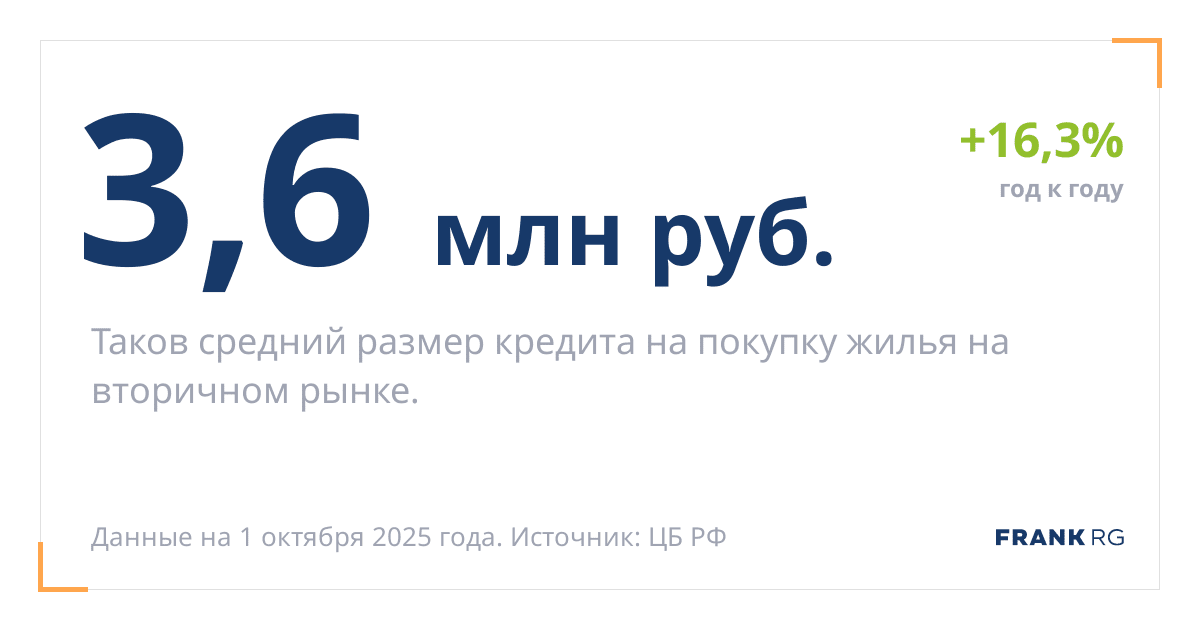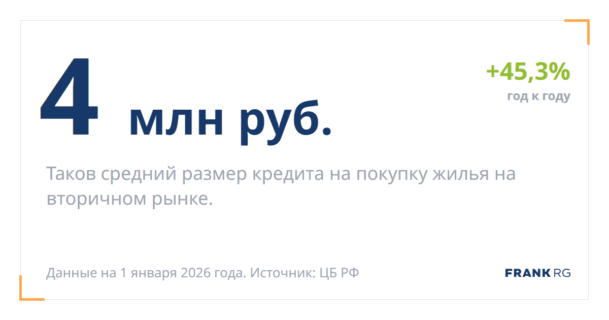 Таков средний размер кредита на покупку жилья на вторичном рынке.