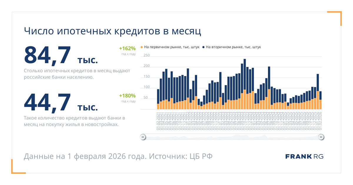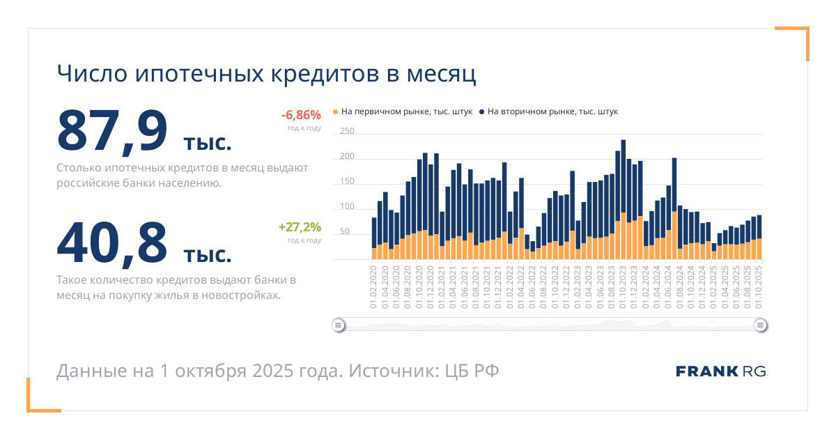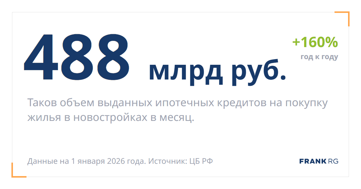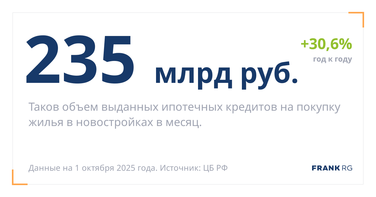 Таков объем выданных ипотечных кредитов на покупку жилья в новостройках в месяц.
