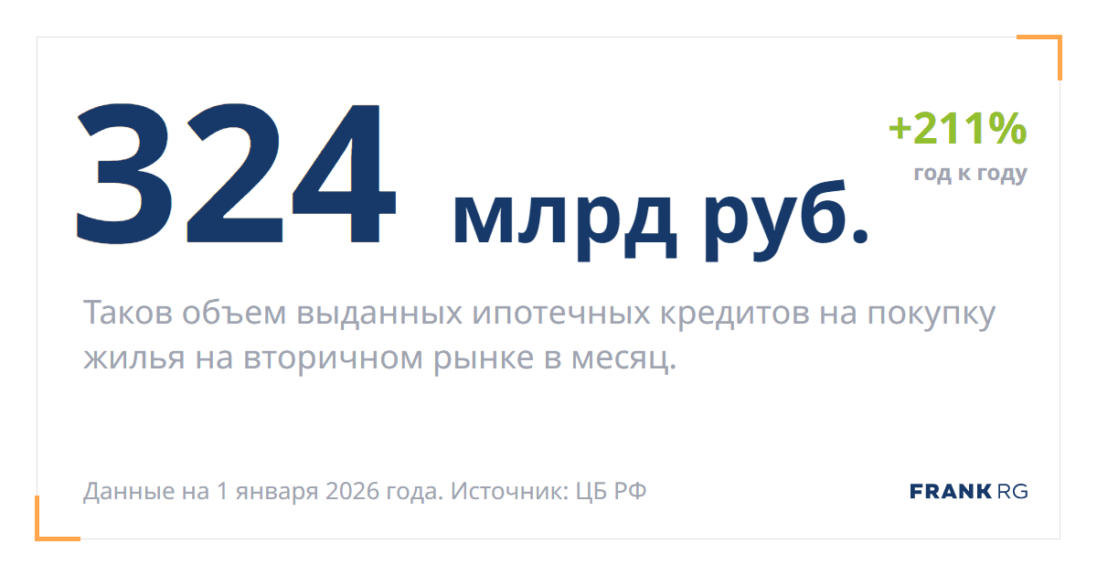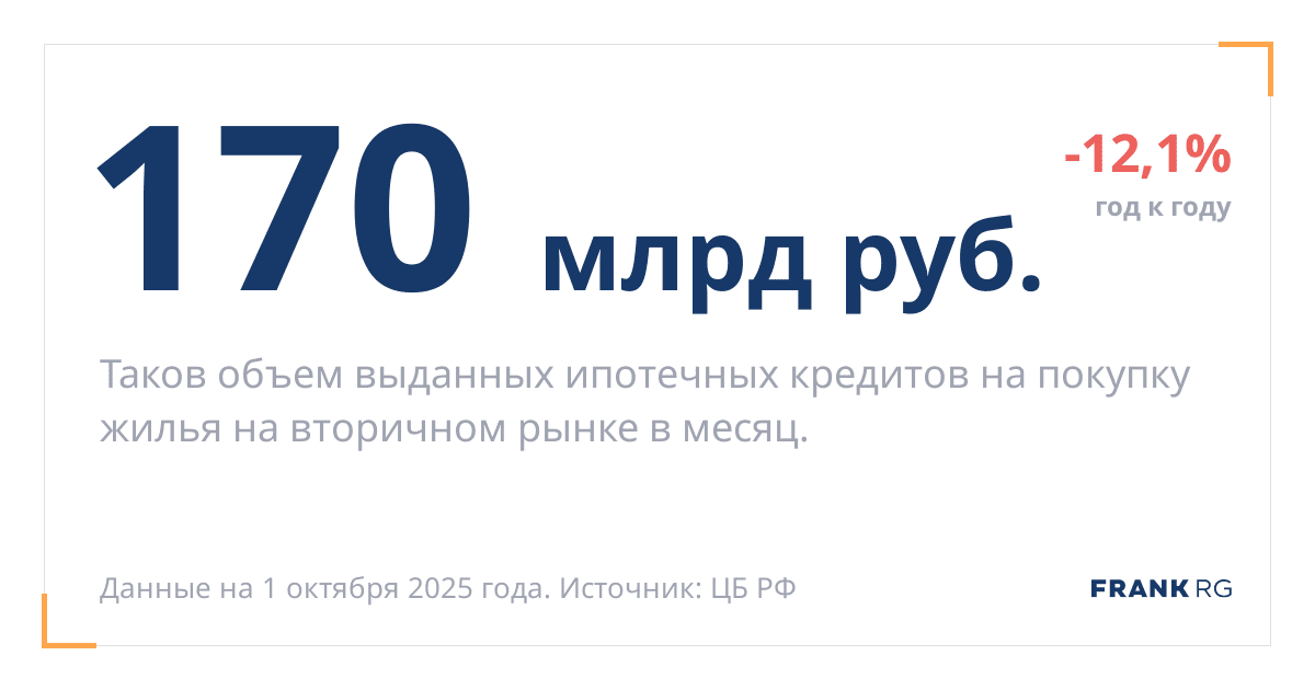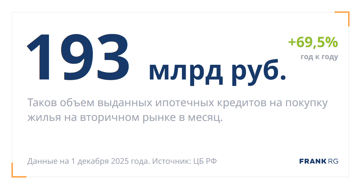 Таков объем выданных ипотечных кредитов на покупку жилья на вторичном рынке в месяц.