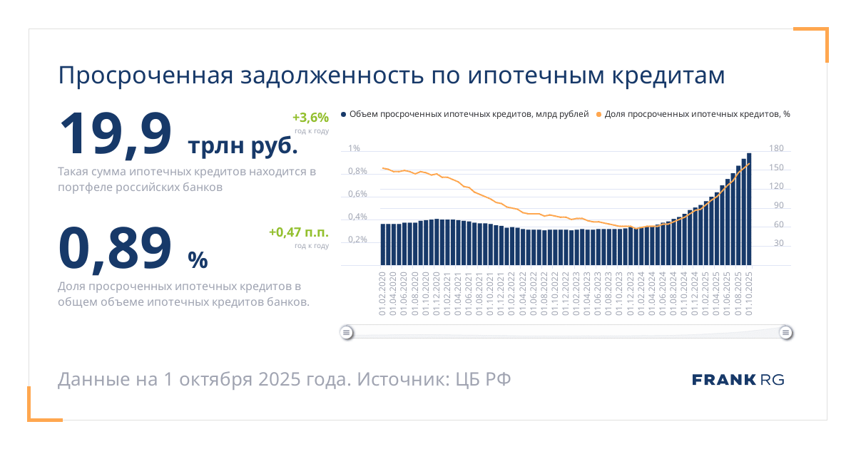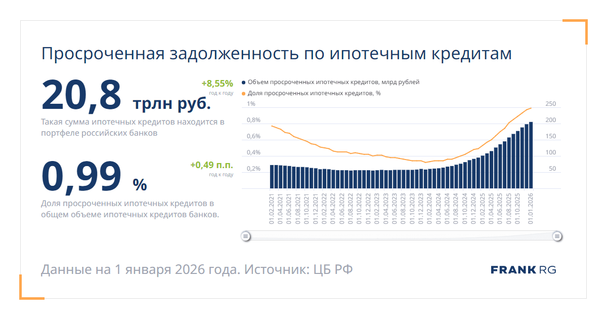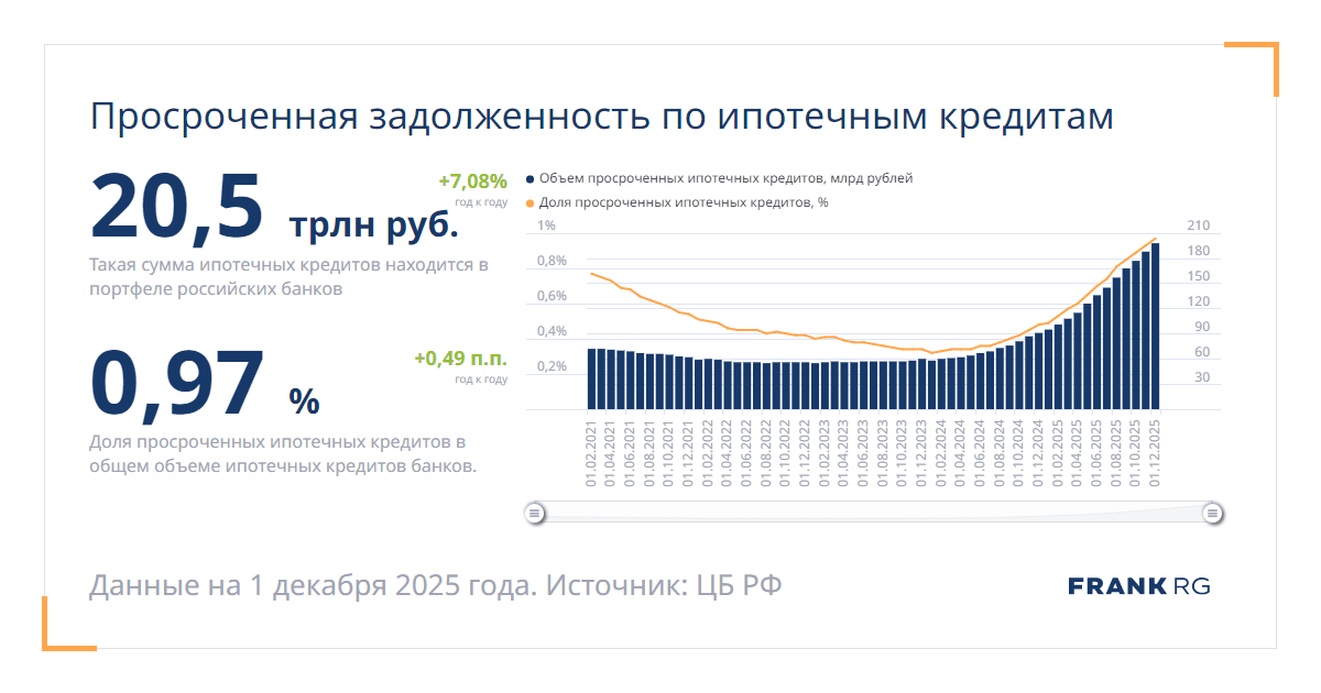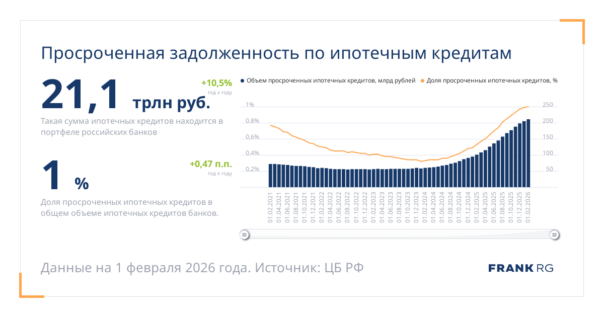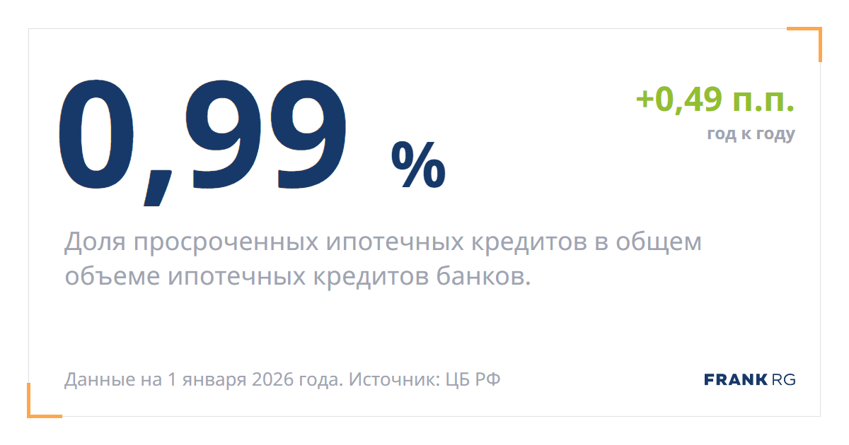 Доля просроченных ипотечных кредитов в общем объеме ипотечных кредитов банков.