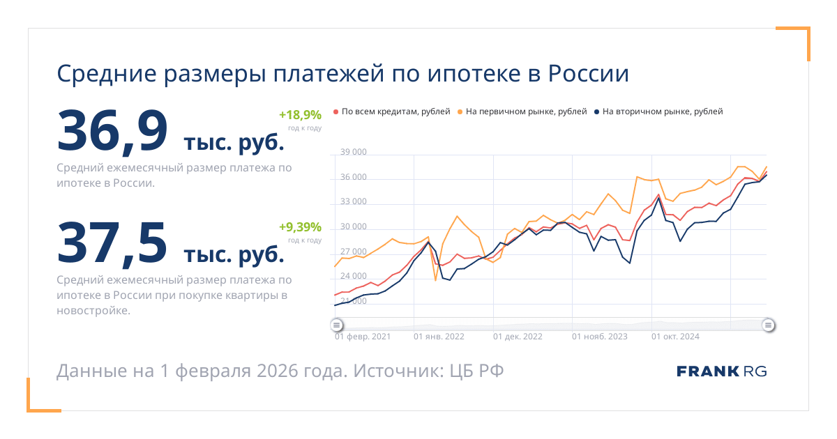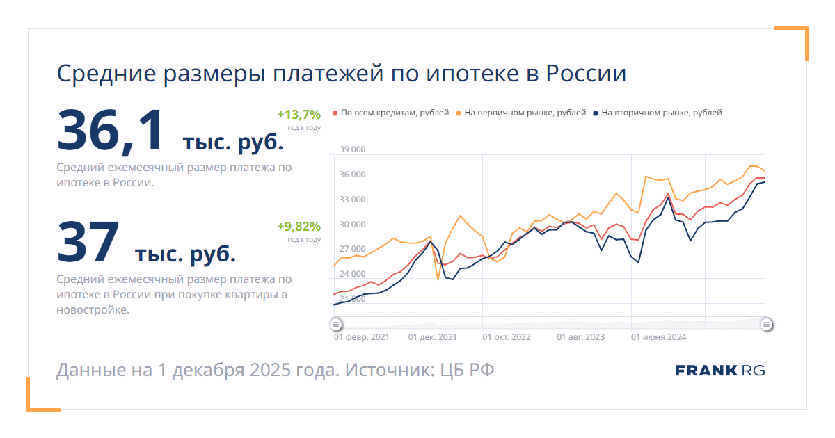 Средний ежемесячный размер платежа по ипотеке в России.