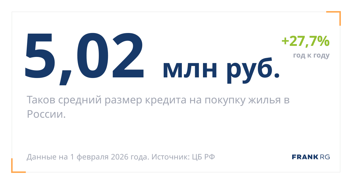Таков средний размер кредита на покупку жилья в России.