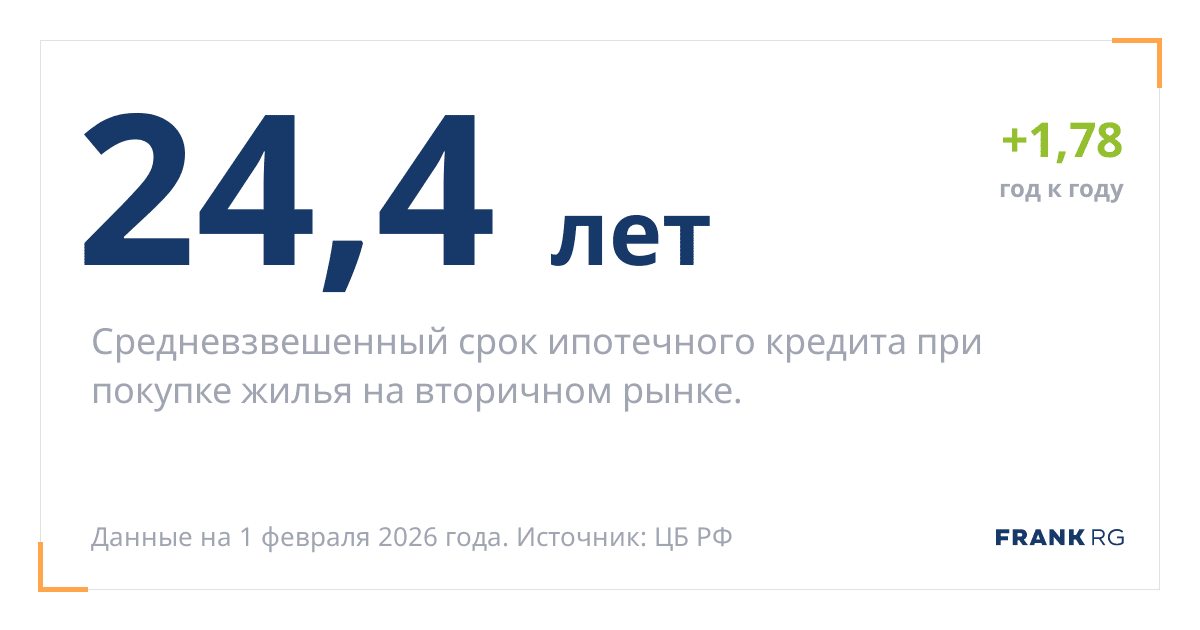 Средневзвешенный срок ипотечного кредита на покупку жилья в России.