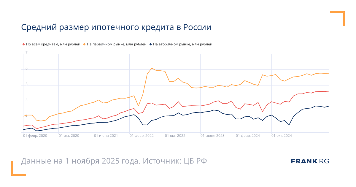Средние размеры кредитов по ипотеке