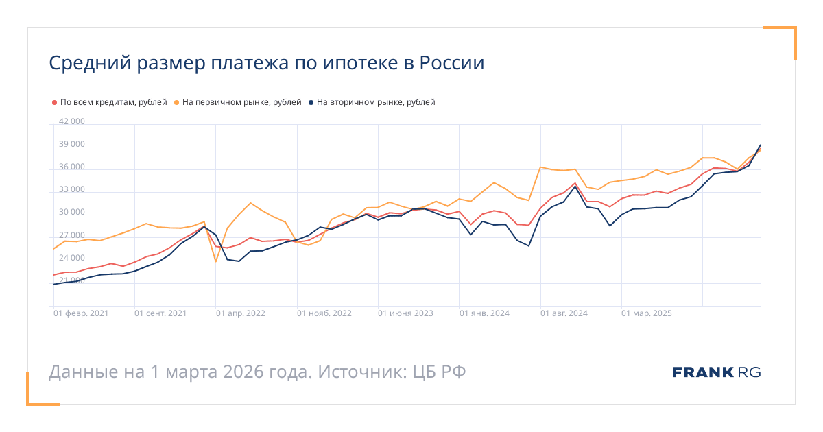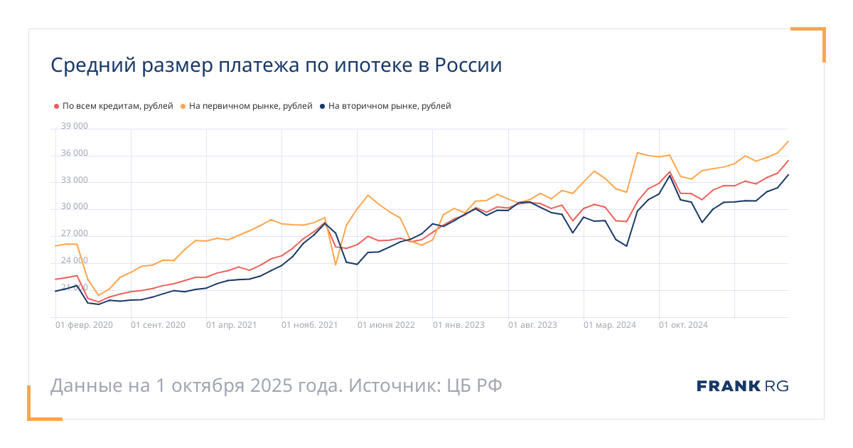 Средние размеры платежей по ипотеке практически не меняются год от года — это около 20-25 тыс рублей. Это тот предельный уровень долговой нагрузки, который могут позволить себе россияне. При изменении ситуации в экономике, на рынке ипотеки, росте ставок или цен на жилье, население предпочитает скорее увеличивать сроки кредитования, чем повышать ежемесячный платеж.