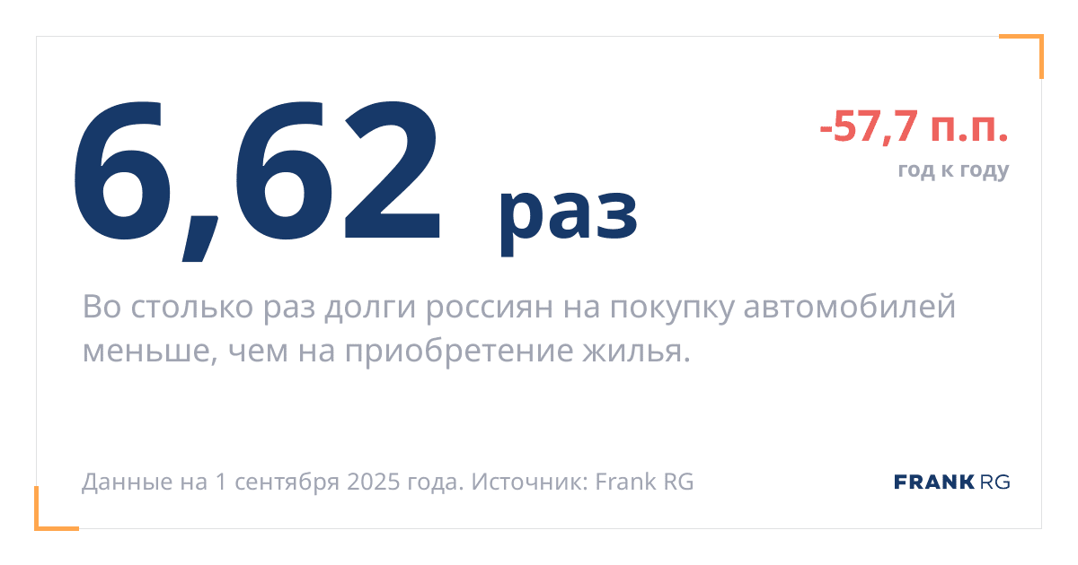 Во столько раз долги россиян на покупку автомобилей меньше, чем на приобретение жилья.