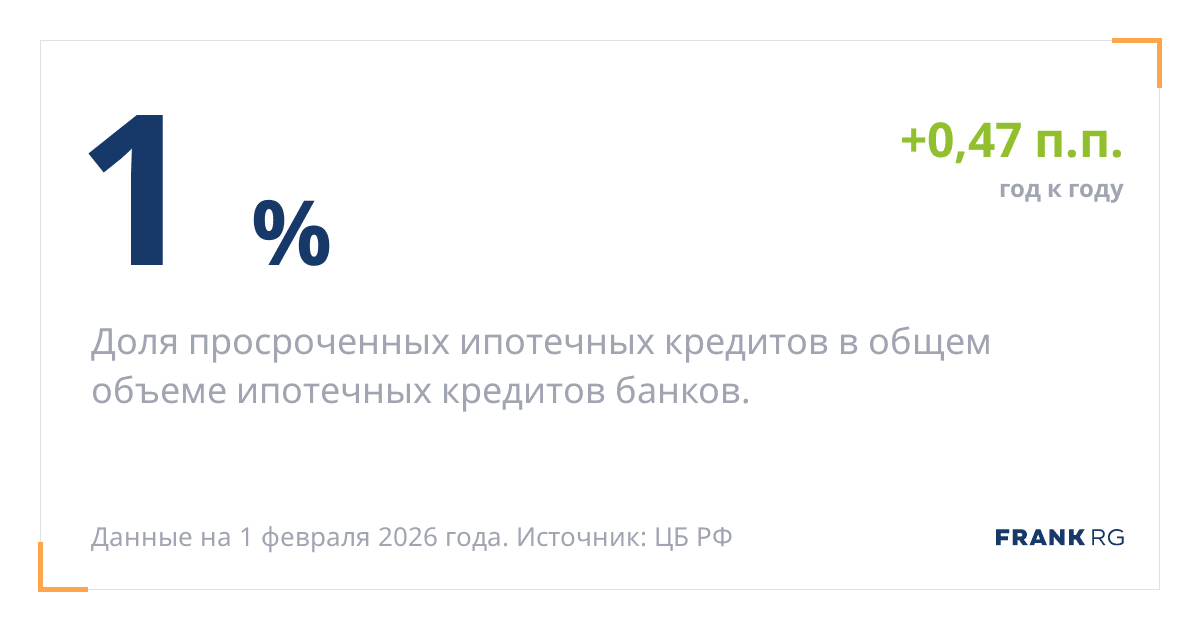Доля просроченных ипотечных кредитов в общем объеме ипотечных кредитов банков.