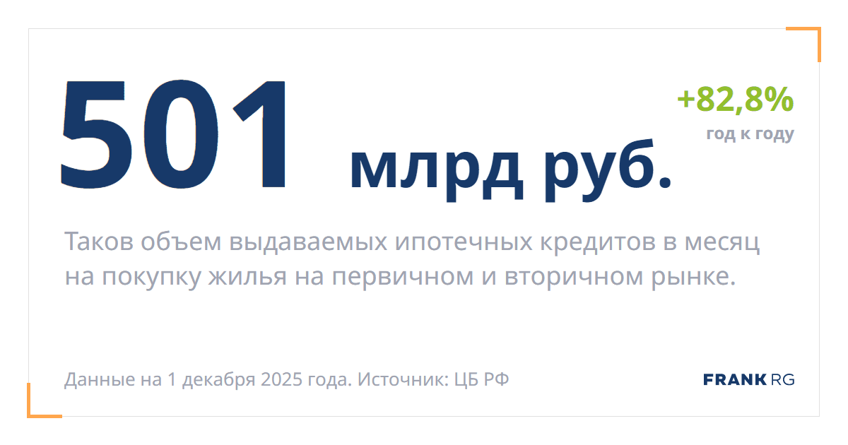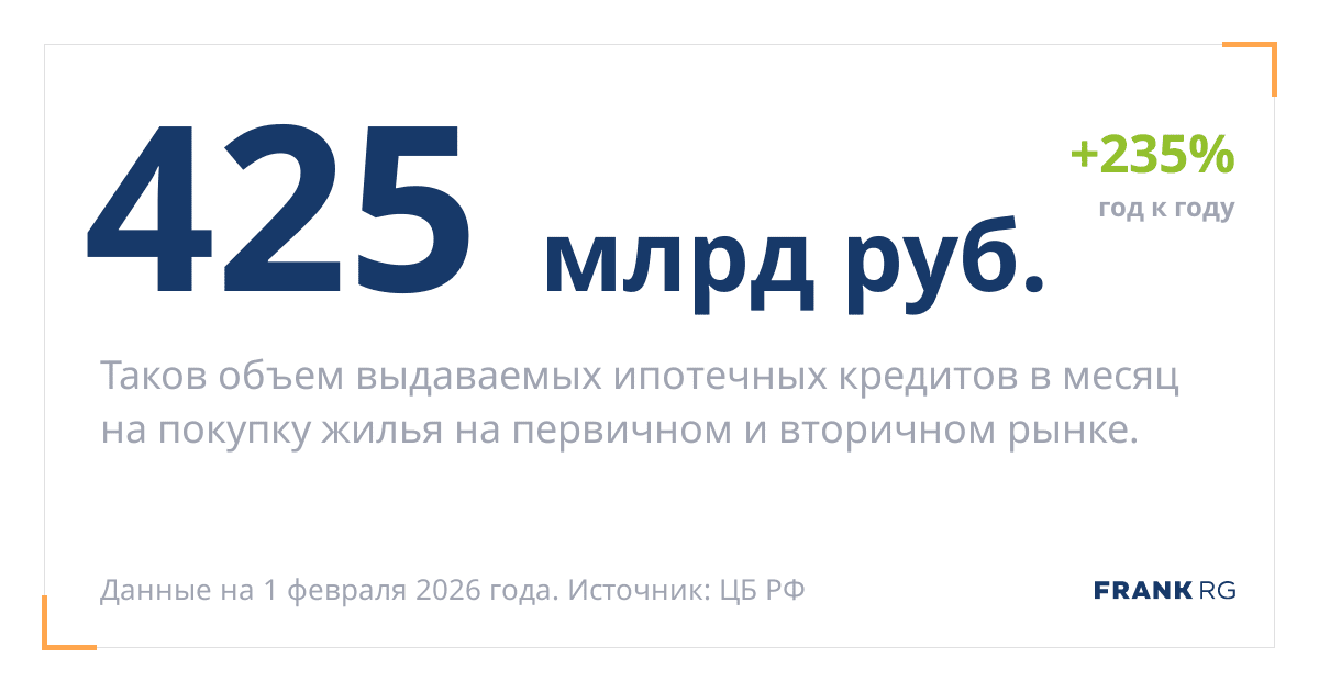 Таков объем выдаваемых ипотечных кредитов в месяц на покупку жилья на первичном и вторичном рынке.