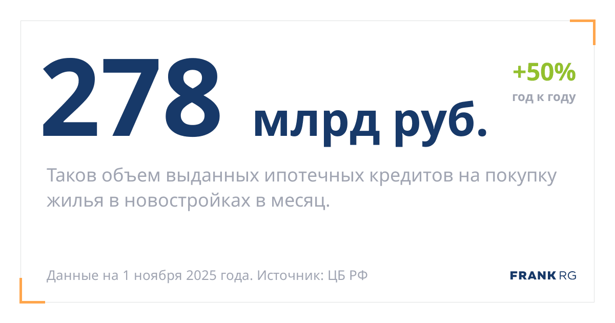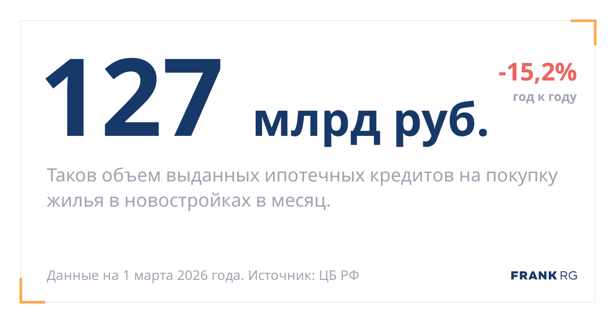 Таков объем выданных ипотечных кредитов на покупку жилья в новостройках в месяц.