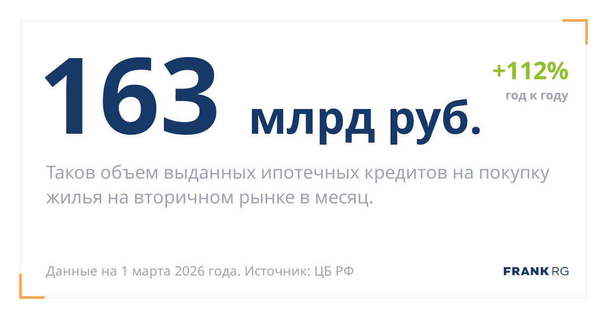 Таков объем выданных ипотечных кредитов на покупку жилья на вторичном рынке в месяц.