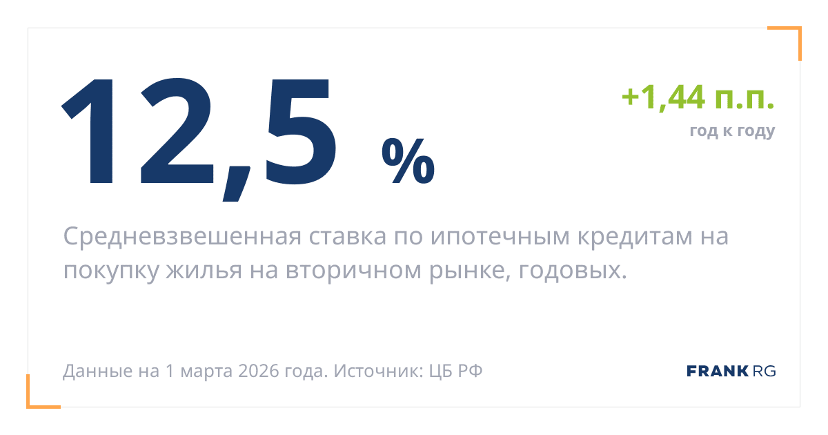 Средневзвешенная ставка по ипотечным кредитам на покупку жилья на вторичном рынке, годовых.