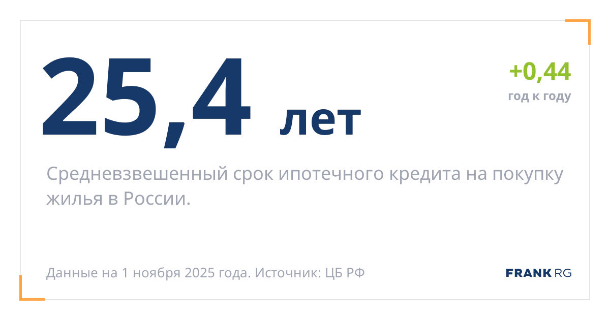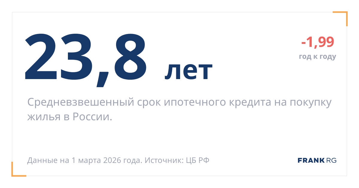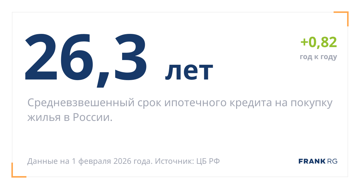 Средневзвешенный срок ипотечного кредита на покупку жилья в России.