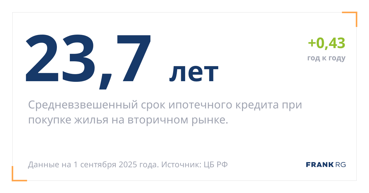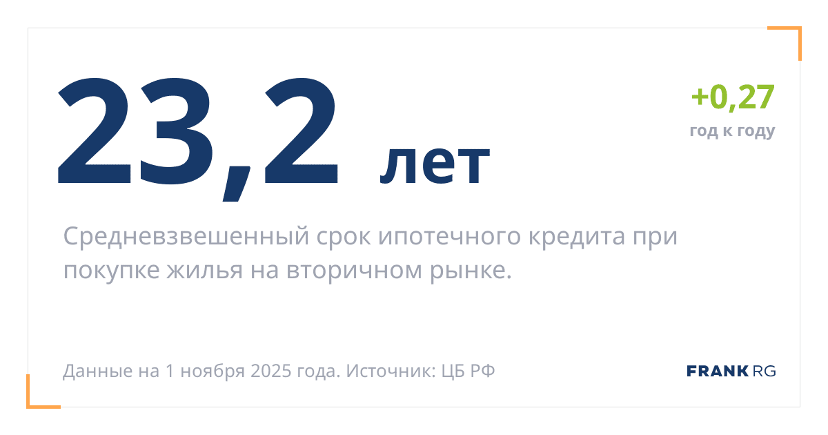 Средневзвешенный срок ипотечного кредита при покупке жилья на вторичном рынке.
