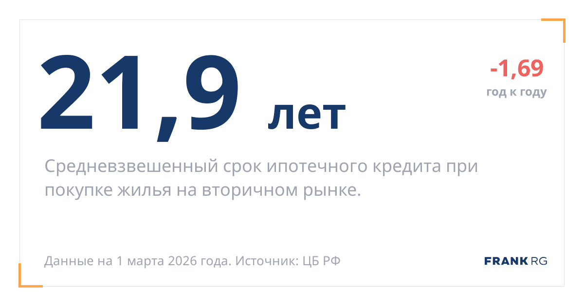 Средний срок ипотеки на вторичном рынке