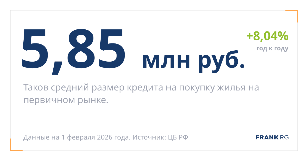 Таков средний размер кредита на покупку жилья на первичном рынке.