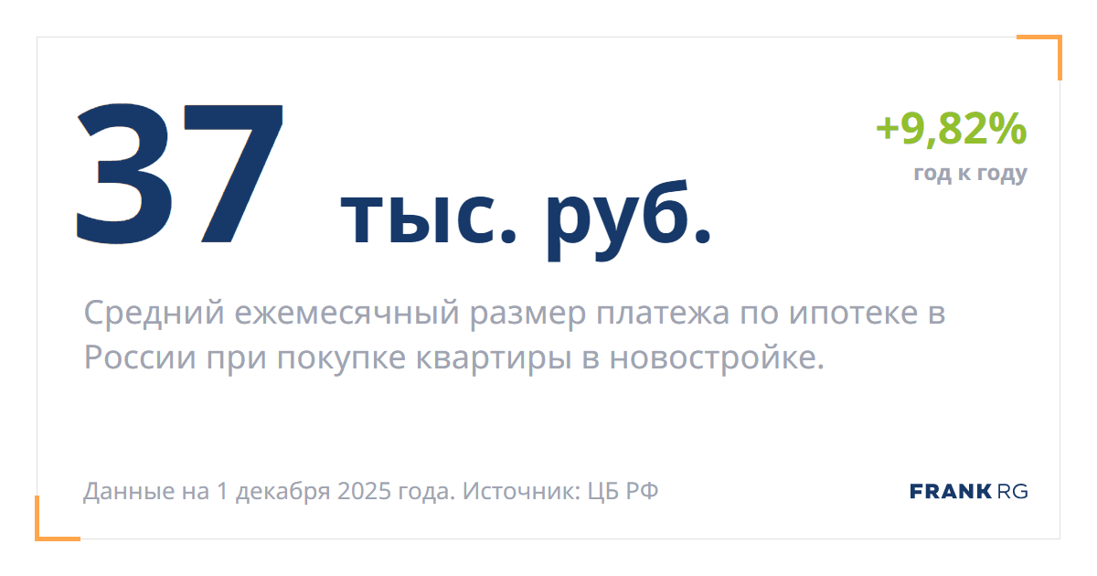 Средний ежемесячный размер платежа по ипотеке в России при покупке квартиры в новостройке.