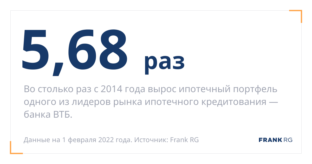 Во столько раз с 2014 года вырос ипотечный портфель одного из лидеров рынка ипотечного кредитования — банка ВТБ.