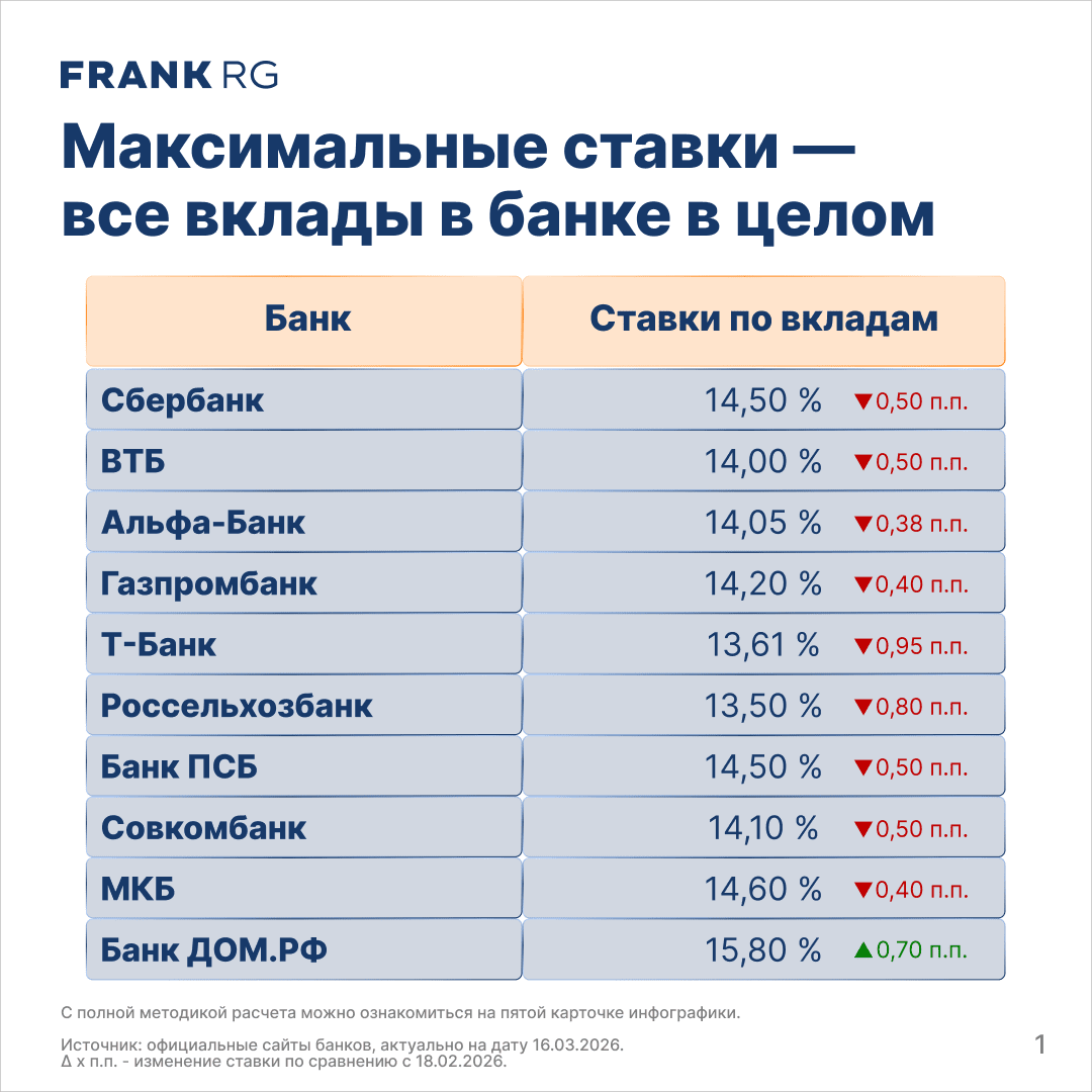 В эту пятницу, 20 марта, Совет директоров Банка России проведет заседание по ключевой ставке. В ожидании её снижения большинство банков из топ-10 уже скорректировали ставки по вкладам
